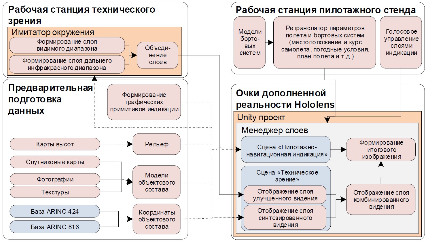 Рис. 4. Архитектура демонстратора ИУП кабины воздушного судна с наголовной индикацией