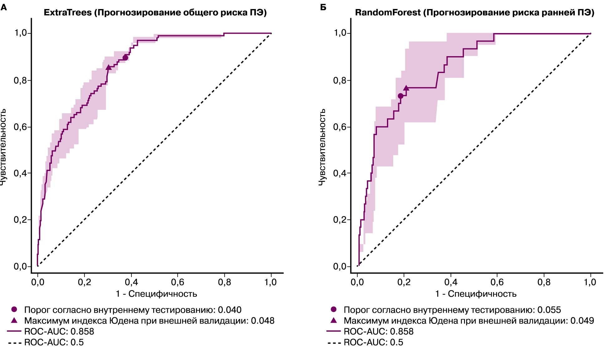 Цель исследования: разработка и валидация моделей прогнозирования общего риска ПЭ и риска ранней ПЭ с использованием алгоритмов машинного обучения (МО) в I триместре беременности на данных реальной клинической практики.