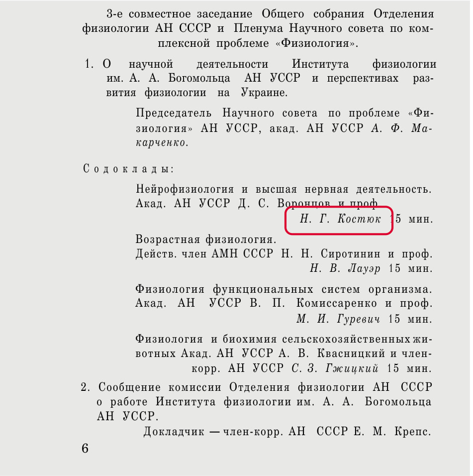Рис. 7. Доклад проф. П.Г. Костюка на собрании Отделения физиологии АН СССР.