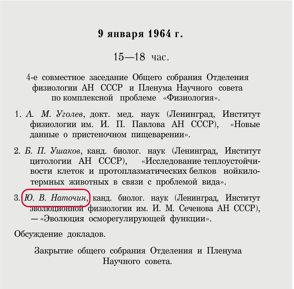 Рис. 9. Доклад к.б.н. Ю.В. Наточина на собрании Отделения физиологии АН СССР.