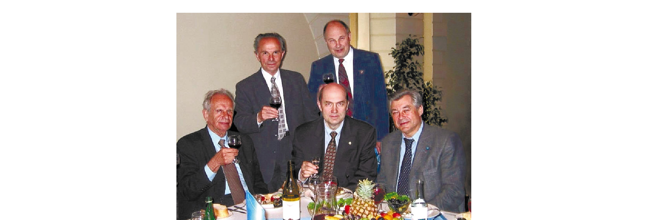 Рис. 12. Завершающая встреча руководителей Отделения физиологии в 2002 г. Слева направо: академики П.Г. Костюк, Ю.В. Наточин, М.А. Пальцев, Д.С. Павлов, А.И. Григорьев.