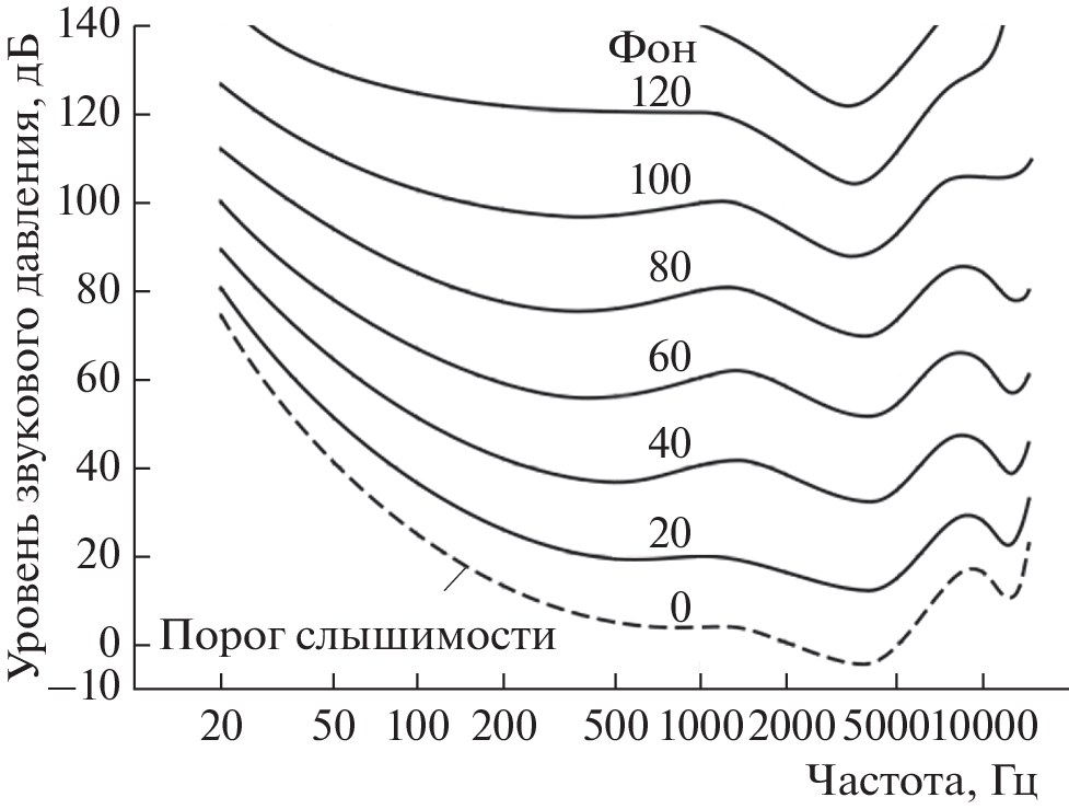 Curves of equal loudness for sounds of different frequencies and auditory frequency responses are discussed. It is shown that curves of equal loudness do not describe the auditory frequency response and are applicable only to tonal signals. The auditory frequency response can adapt to the sound spectrum. For music, a broadband frequency response is formed; for speech, a frequency response with low-frequency suppression is used.