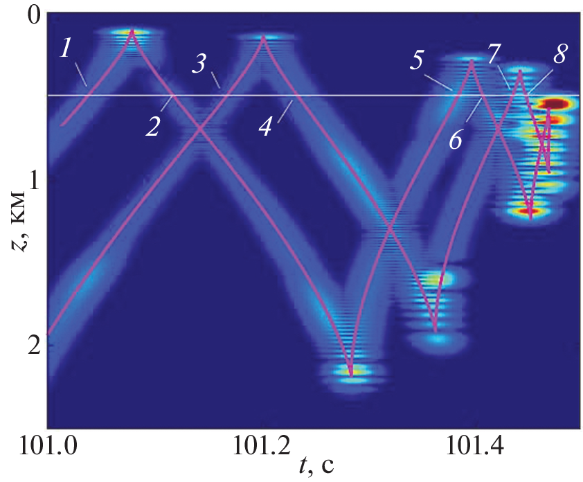 - Virovlyansky A.L. On general properties of ray arrival sequences in oceanic acoustic waveguides // J. Acoust. Soc. Am. 1995. V. 97. P. 3180–3183.
