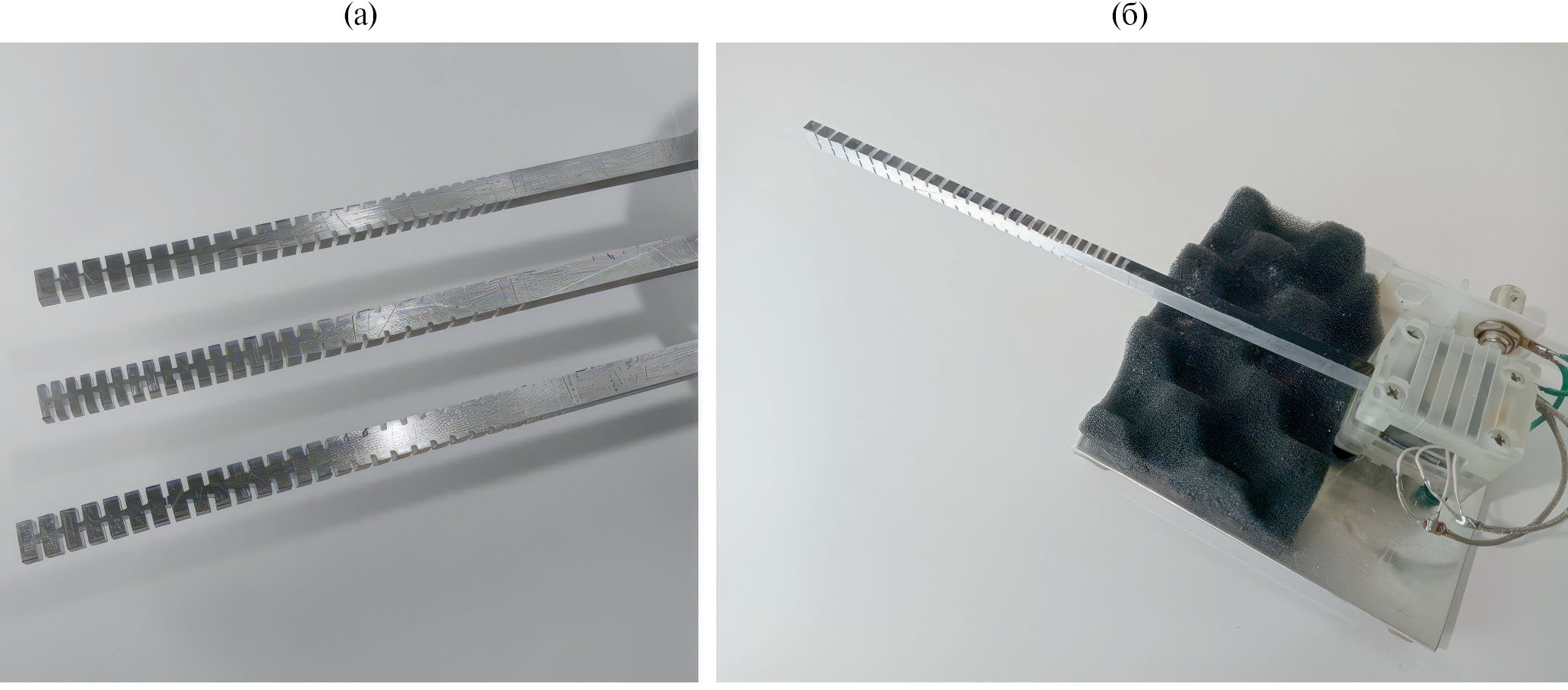 Для проведения экспериментальных исследований из сплава Д16 были изготовлены экспериментальные образцы разрезных стержней с размерами и прорезями, заявленными для моделирования (рис. 6). Погрешности изготовления прорезей составили 0.5 мм.