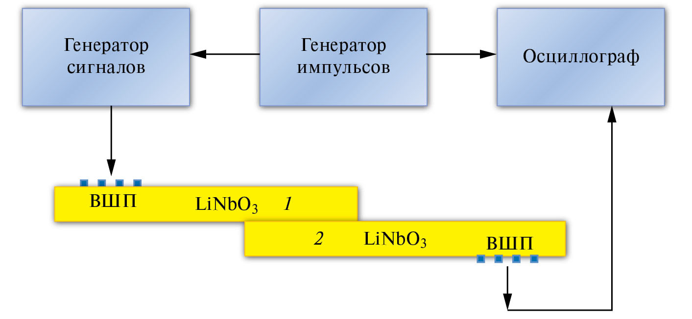 Рис. 1. Схема линии задержки, состоящая из двух пьезоэлектрических пластин ниобата лития Y-среза