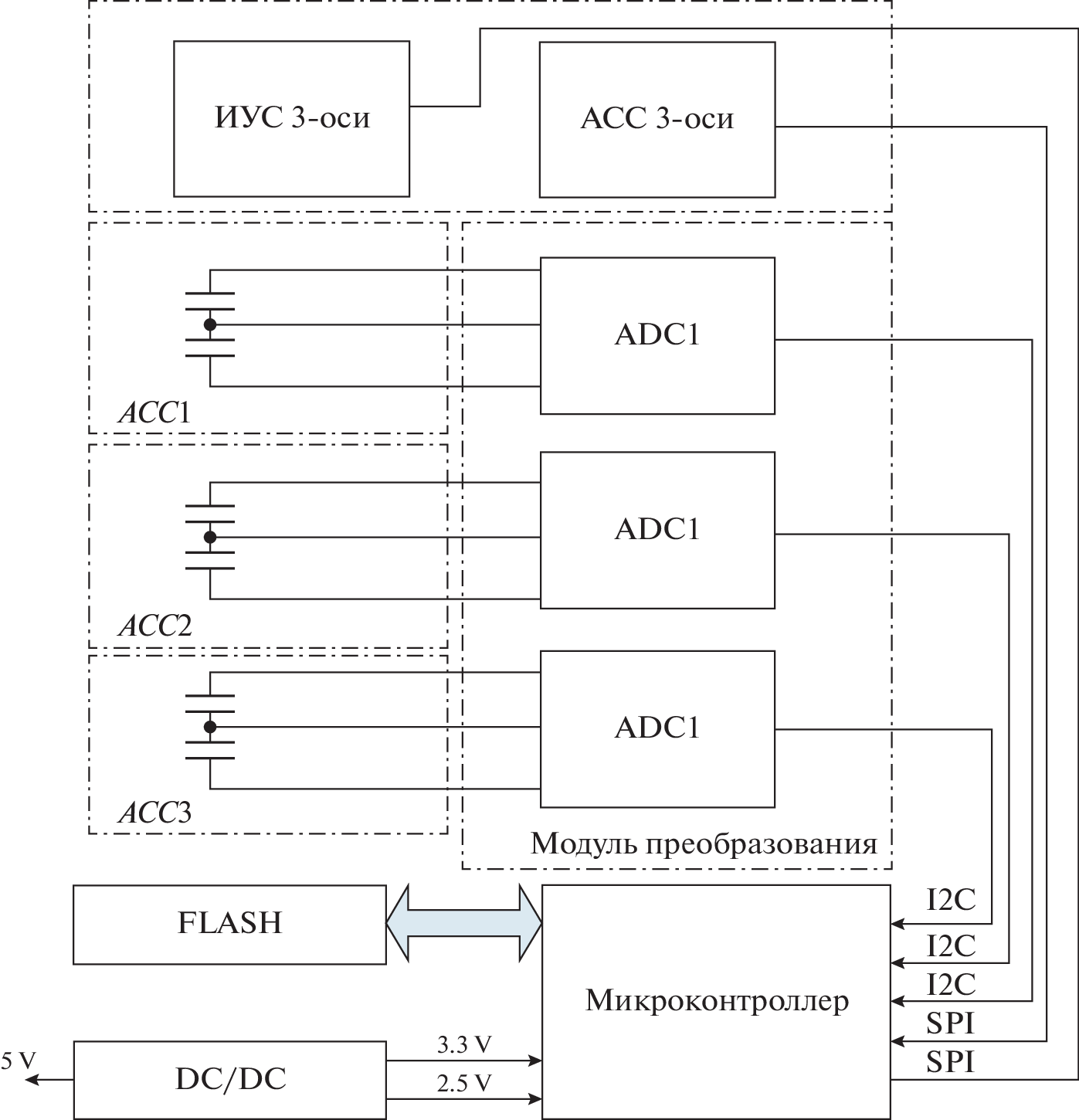 The accelerometers and the angular velocity sensor, which are part of the meteorological complex of the ExoMars-2022 landing platform (LP), are designed to measure the acceleration during the deceleration of the lander in the Martian atmosphere. Based on the data, the main parameters of the Martian atmosphere are calculated: density, pressure, and temperature. After landing, the sensors are used to determine the acceleration on the surface and vibration effects on the lander of various nature. The sensors are activated prior to entry into the atmosphere and operate during the entire descent until landing. After landing, a long-term monitoring is carried out to identify vibration effects from the atmosphere and the surface. In the paper we consider the scientific problems solved by the sensors, describe the measurement program and consider in detail the design of the sensors and their characteristics.