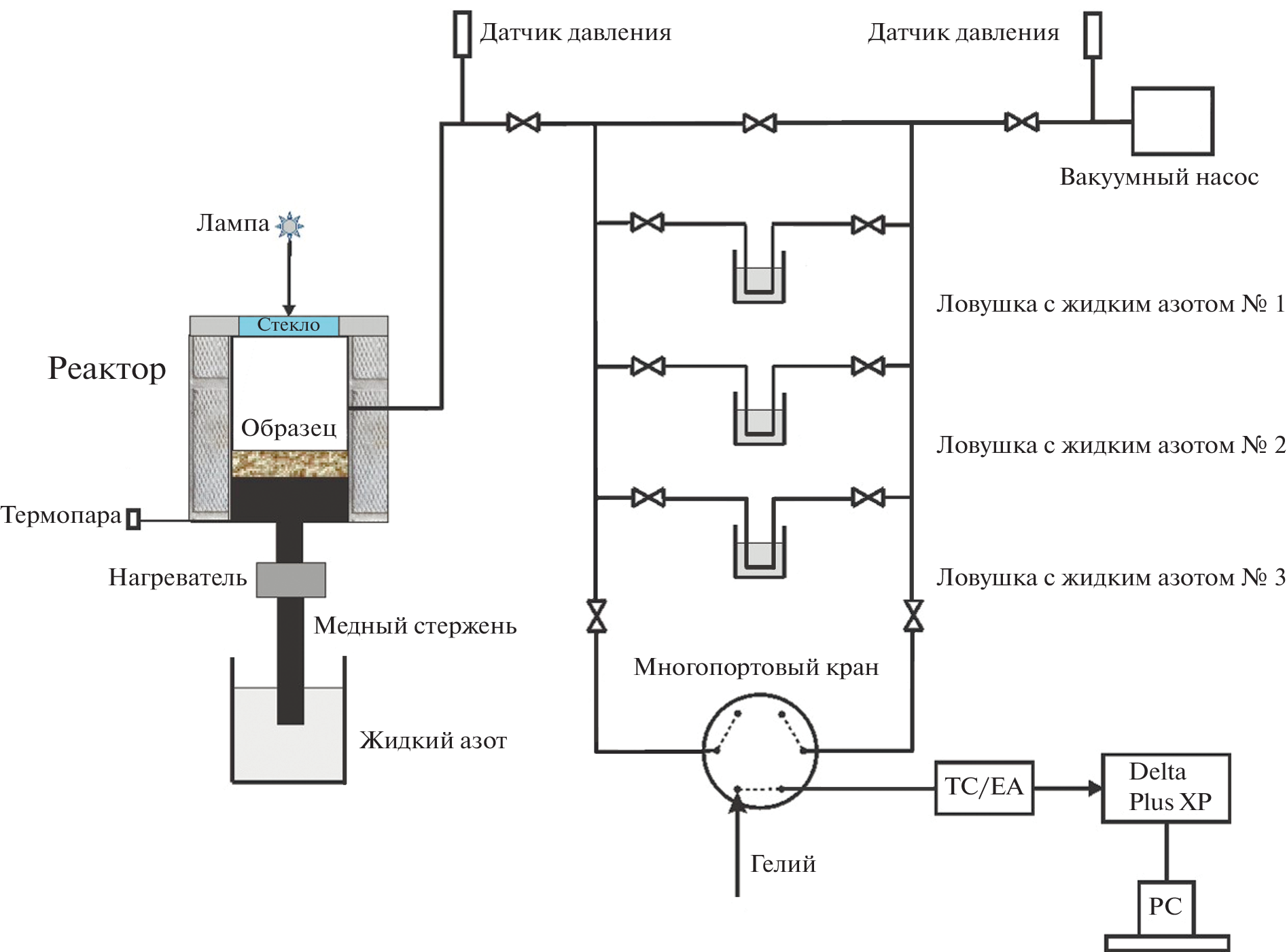 In order to study the processes related to the origin and retention of water on the surface of the Moon, an experimental setup has been created at the Vernadsky Institute of Geochemistry and Analytical Chemistry, Russian Academy of Sciences (GEOKHI RAS), for the analysis of (re)sublimation processes of water ice in a vacuum at low temperatures. The temperature range for (re)sublimation varies from –100 to 0°C. The setup is connected to an Isotope Ratio Mass Spectrometer (IRMS), which allows for measuring the isotopic composition of the vapor of the evaporating substance and providing an estimation of the (re)sublimation rate under specific physicochemical conditions. The direct introduction of gases into the mass spectrometer in real-time mode sets the developed setup apart from foreign counterparts. The setup is equipped with a transparent quartz window through which the surface of the studied substance can be heated using a halogen lamp, simulating the movement of solar rays on the surface of mineral grain compositions under conditions similar to those on the lunar surface. In addition to studying gas (de)sorption on the surfaces of mineral grains of various compositions, the setup can also be used for researching the (re)sublimation of gas hydrates and CO2.