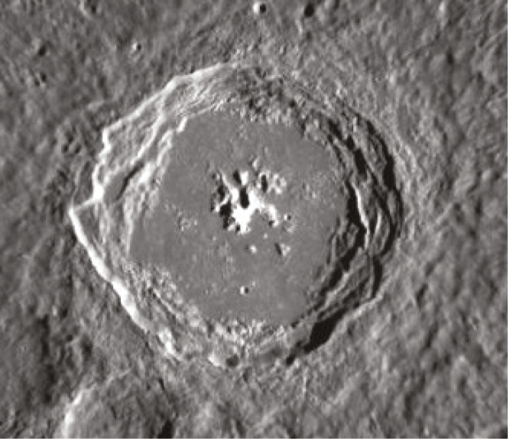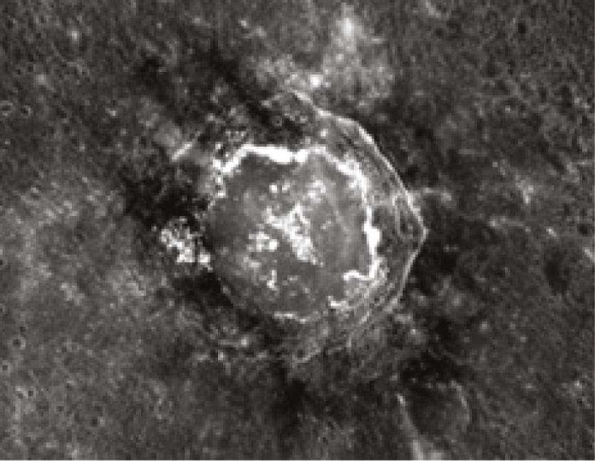 Рис. 6. Кратер Аленкар (63.5°S; 103.5°W) (изображение получено на КА MESSENGER https://messenger.jhuapl.edu/Explore/Images.html#of-mercury).