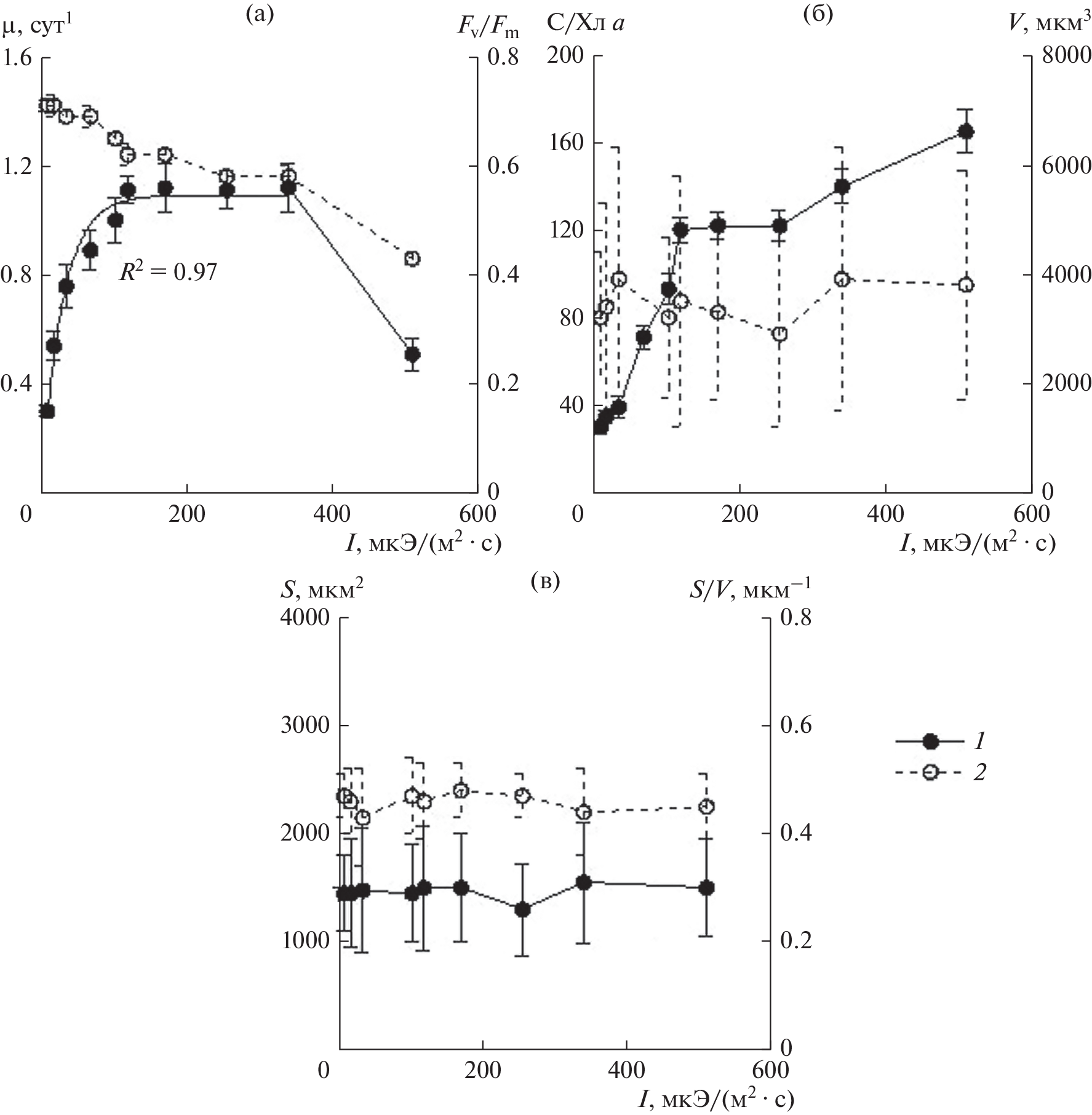 - MacIntyre H.L., Kana T.M., Anning T. et al. 2002. Photoacclimation of photosynthesis irradiance response curves and photosynthetic pigments in microalgae and cyanobacteria // J. Phycol. V. 38. P. 17.