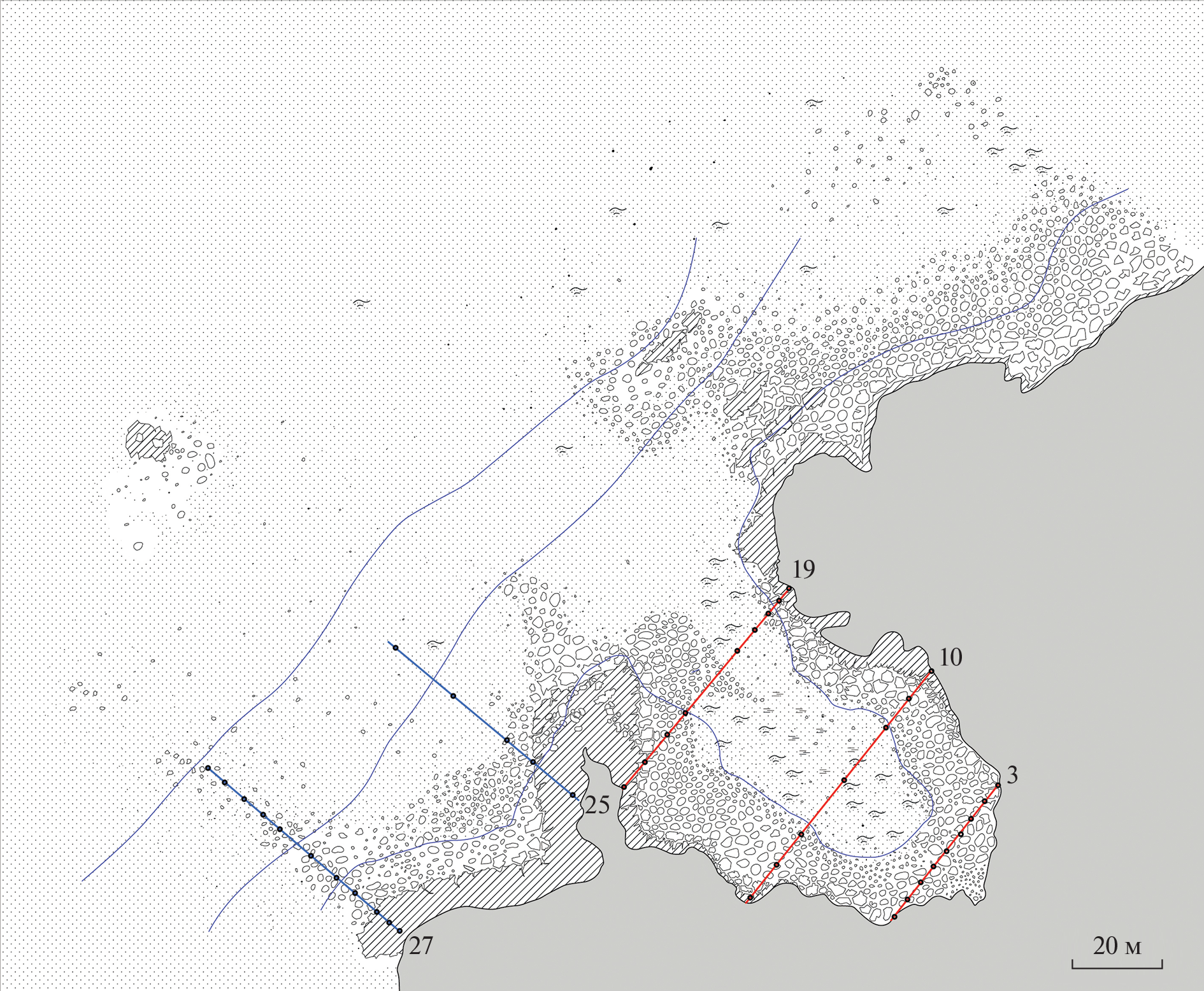Выявлены видовой состав и распределение пяти видов ракообразных Asellus aquaticus (Linnaeus, 1758), Monoporeia affinis (Lindström, 1855), Pallaseopsis quadrispinosa (G.O. Sars, 1867), Mysis relicta Lovén, 1862 и Gmelinoides fasciatus (Stebbing, 1899) в диапазоне глубин 1–25 м на подводном склоне о. Валаам в Ладожском озере. Ракообразных исследовали с использованием поршневого пробоотборника, подводных видеокамер и драги. Впервые описано горизонтальное распределение натурализовавшейся байкальской амфиподы G. fasciatus, показаны особенности еe совместного существования с аборигенными видами. Распределение этого вселенца связано с воздействием комплексных внешних факторов: достоверно различаются его количественные характеристики на участках с разной интенсивностью волнения, в различных диапазонах глубины и с разными грунтами. Обилие наиболее массового аборигенного вида Pallaseopsis quadrispinosa достоверно выше в сублиторали, где он образует скопления. Влияния грунтов на распределение нативных ракообразных на прибрежном свале не обнаружено. Аборигенные виды образуют с вселенцем сообщества, но у них выше устойчивость к волновому воздействию по сравнению с Gmelinoides fasciatus. Поэтому участки открытых побережий служат естественными убежищами, сохраняющими разнообразие аборигенных видов. Полученные данные о пространственном распределении ракообразных позволяют характеризовать донные сообщества малоисследованных частей литорали и сублиторали и, как следствие, базу питания рыб-бентофагов.
