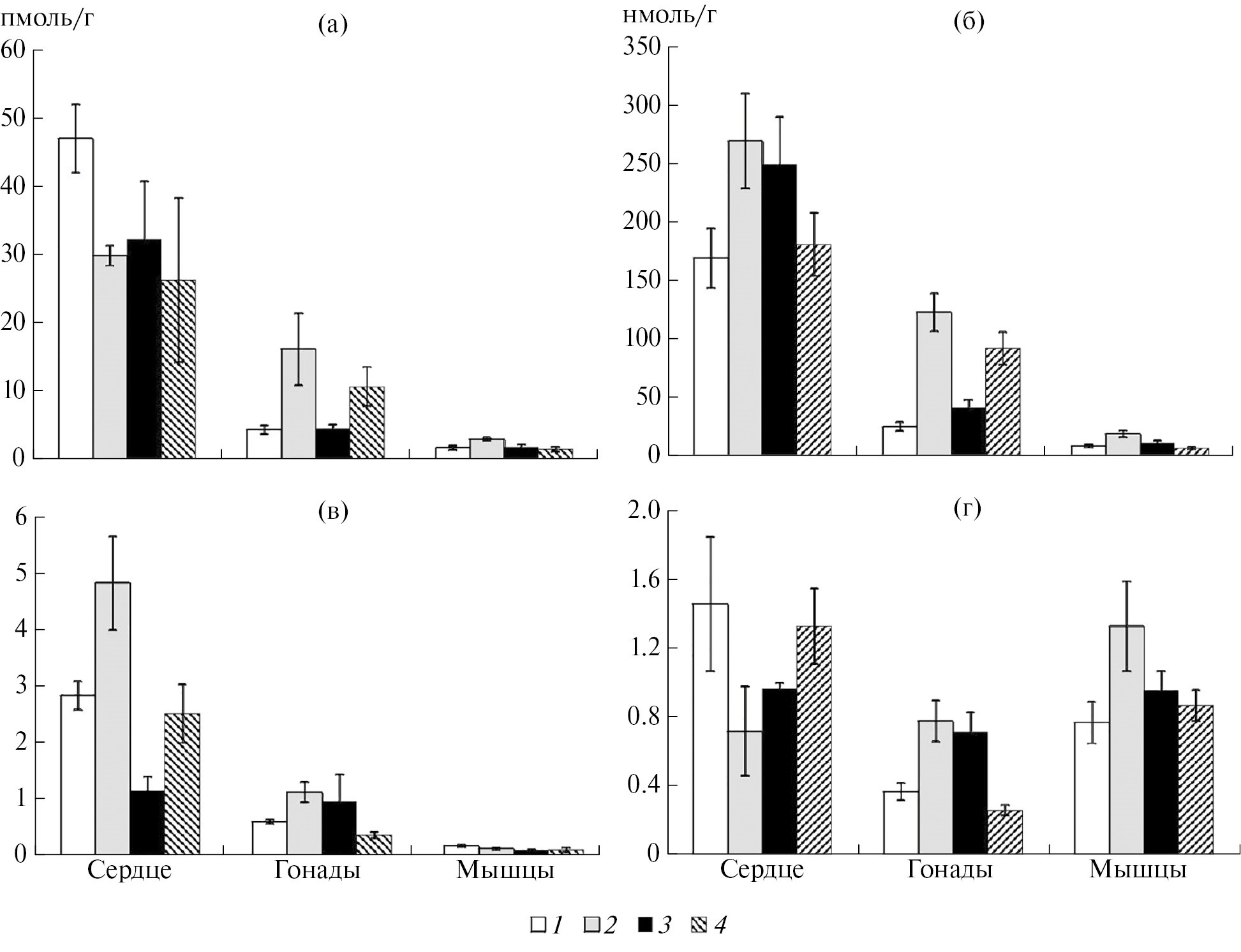 нмоль/г cырой массы | пмоль/г сырой массы | ||||