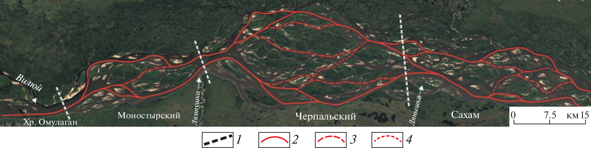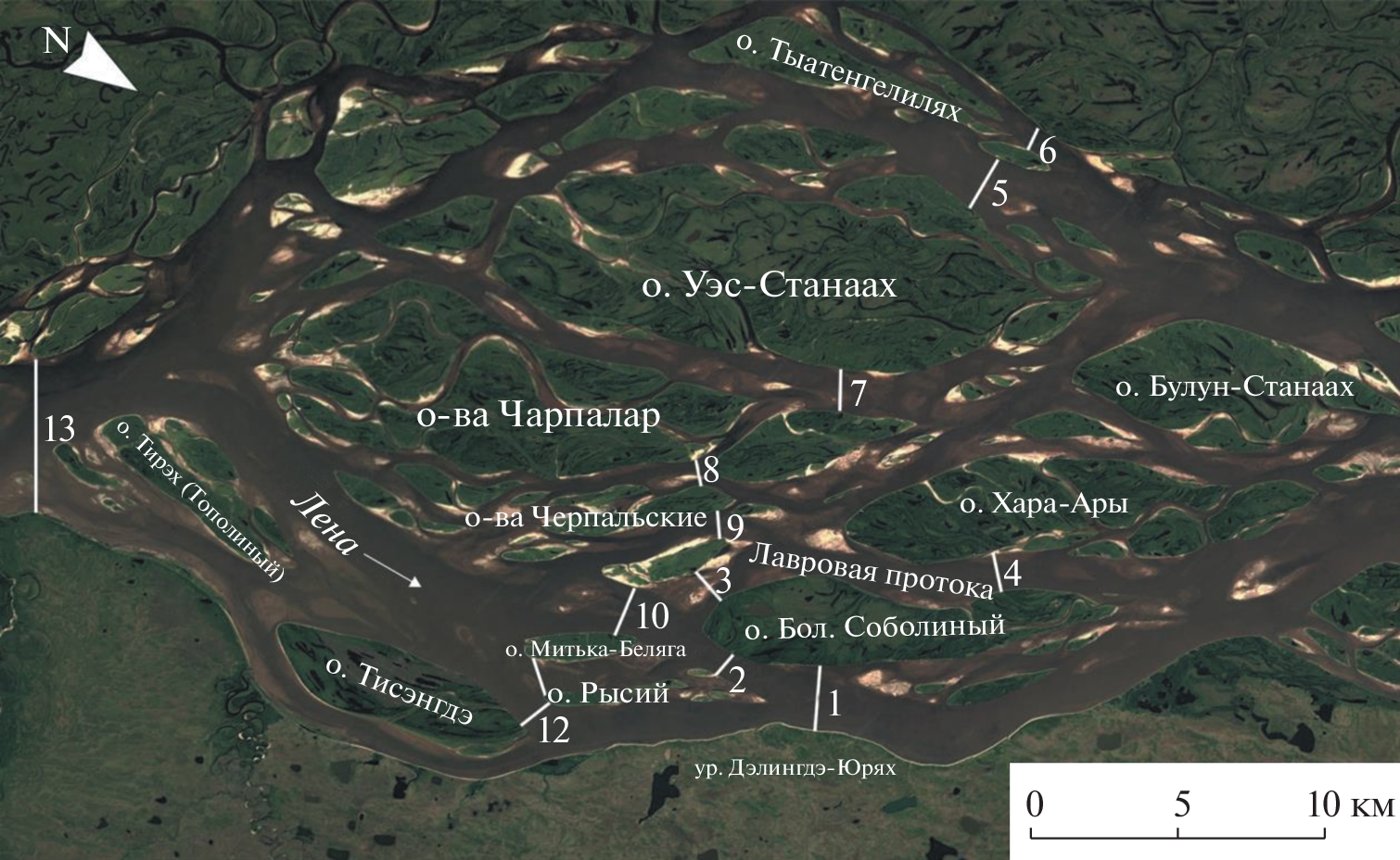 Морфология русла и рассредоточение стока среди островов сложных параллельно-рукавных разветвлений нижней лены и их многолетняя изменчивость