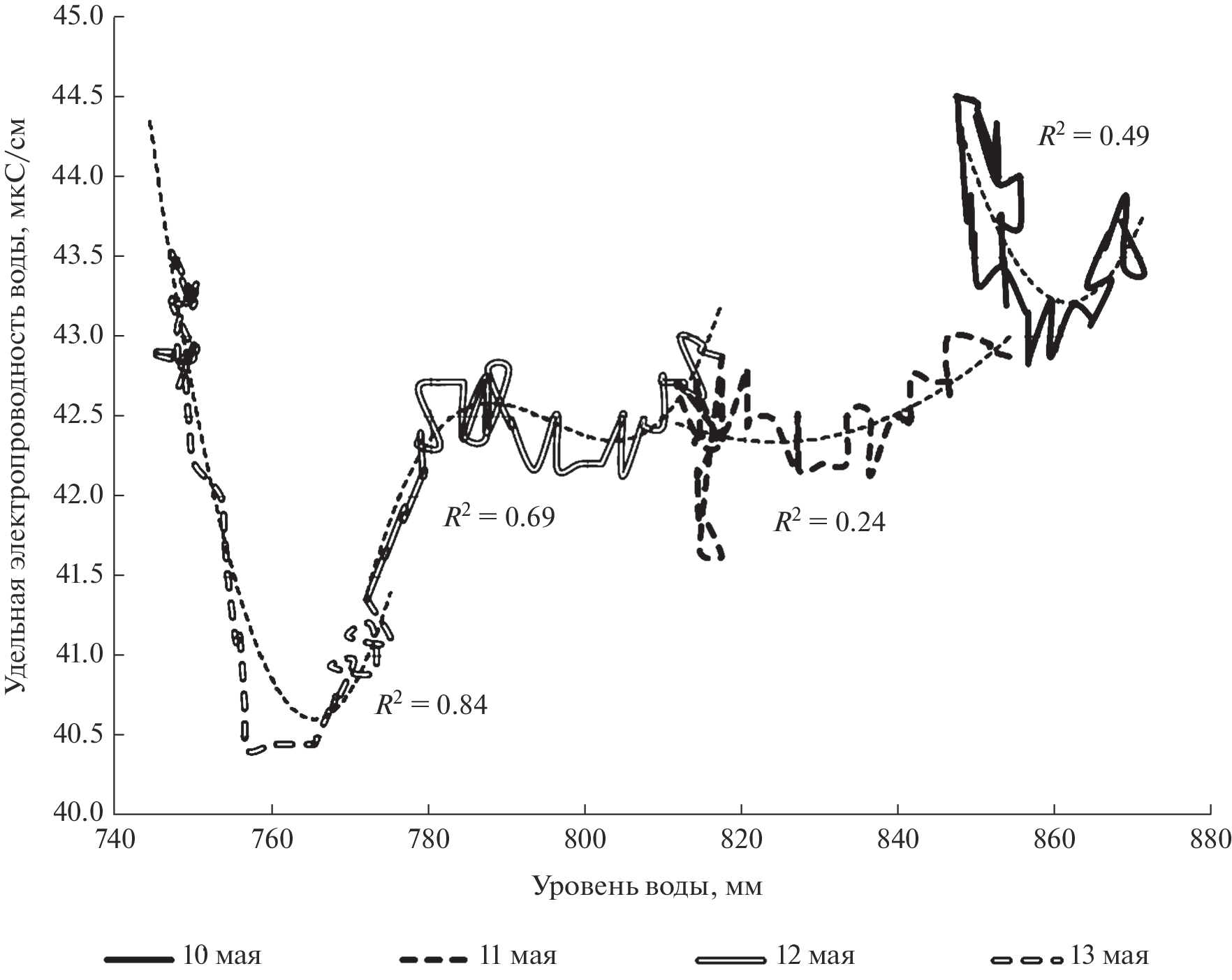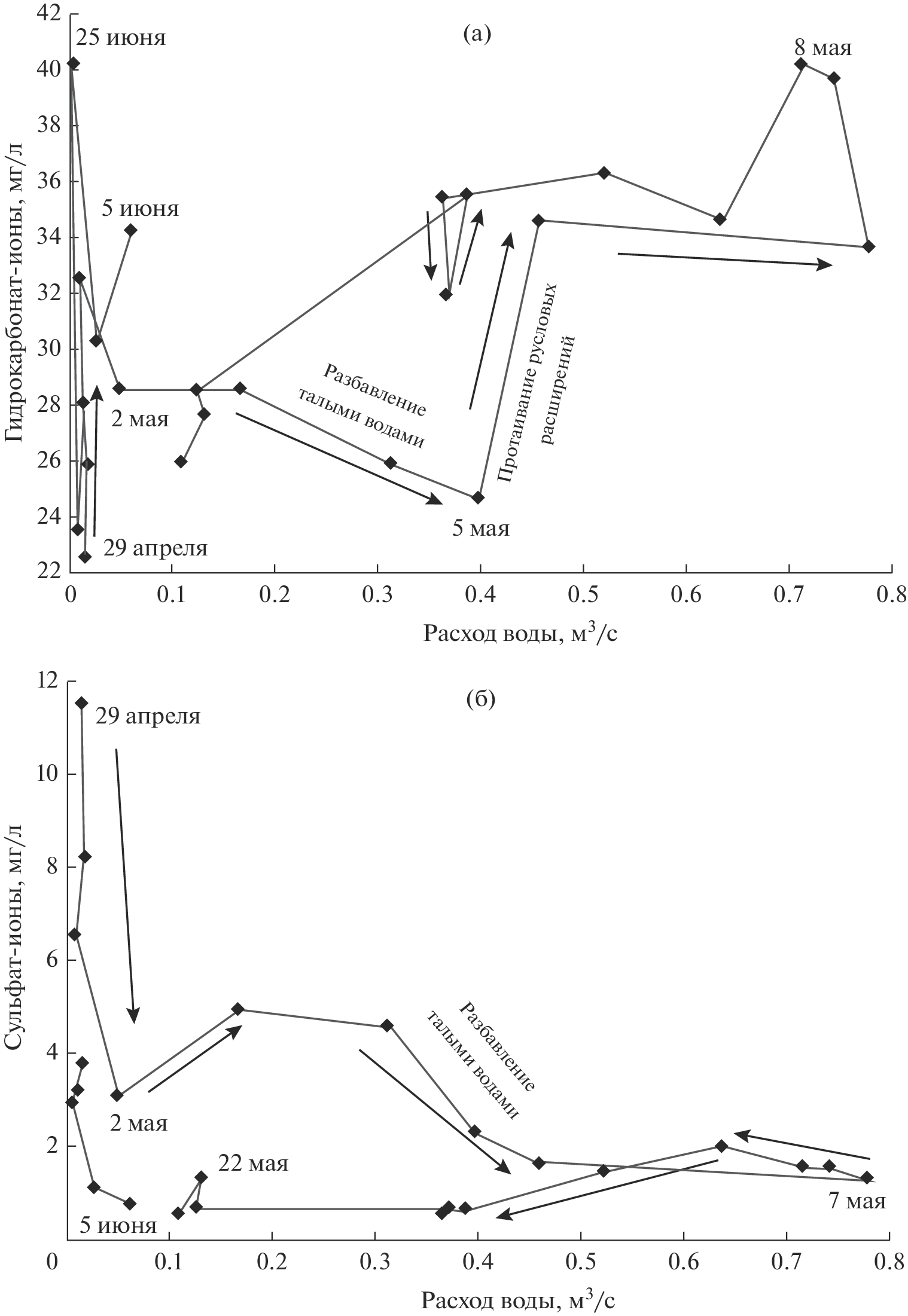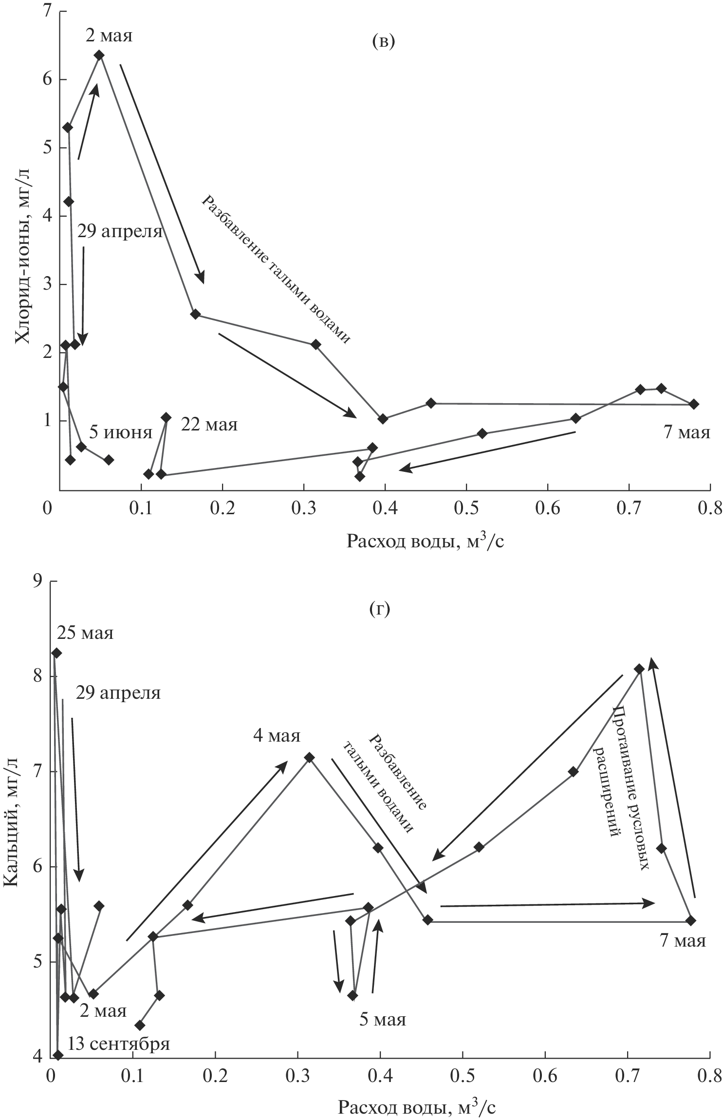 - Knapp J.L.A., von Freyberg J., Studer B., Kiewiet L., Kirchner J.W. Concentration-discharge relationships vary among hydrological events, reflecting differences in event characteristics // Hydrol. Earth Syst. Sci. 2020. V. 24. P. 2561–2576. https://doi.org/0.5194/hess-24-2561-2020
