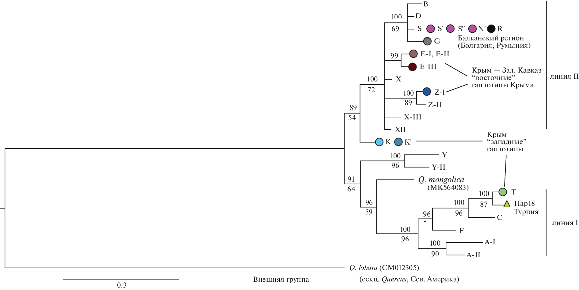 - Tekpinar A.D., Aktas C., Kansu C. et al. Phylogeography and phylogeny of genus Quercus L. (Fagaceae) in Turkey implied by variations of trnT((UGU))-L-(UAA)-F ((GAA)) chloroplast DNA region // Tree Genet. Genom. 2021. V. 17. № 5. Article number 40. https://doi.org/10.1007/s11295-021-01522-x