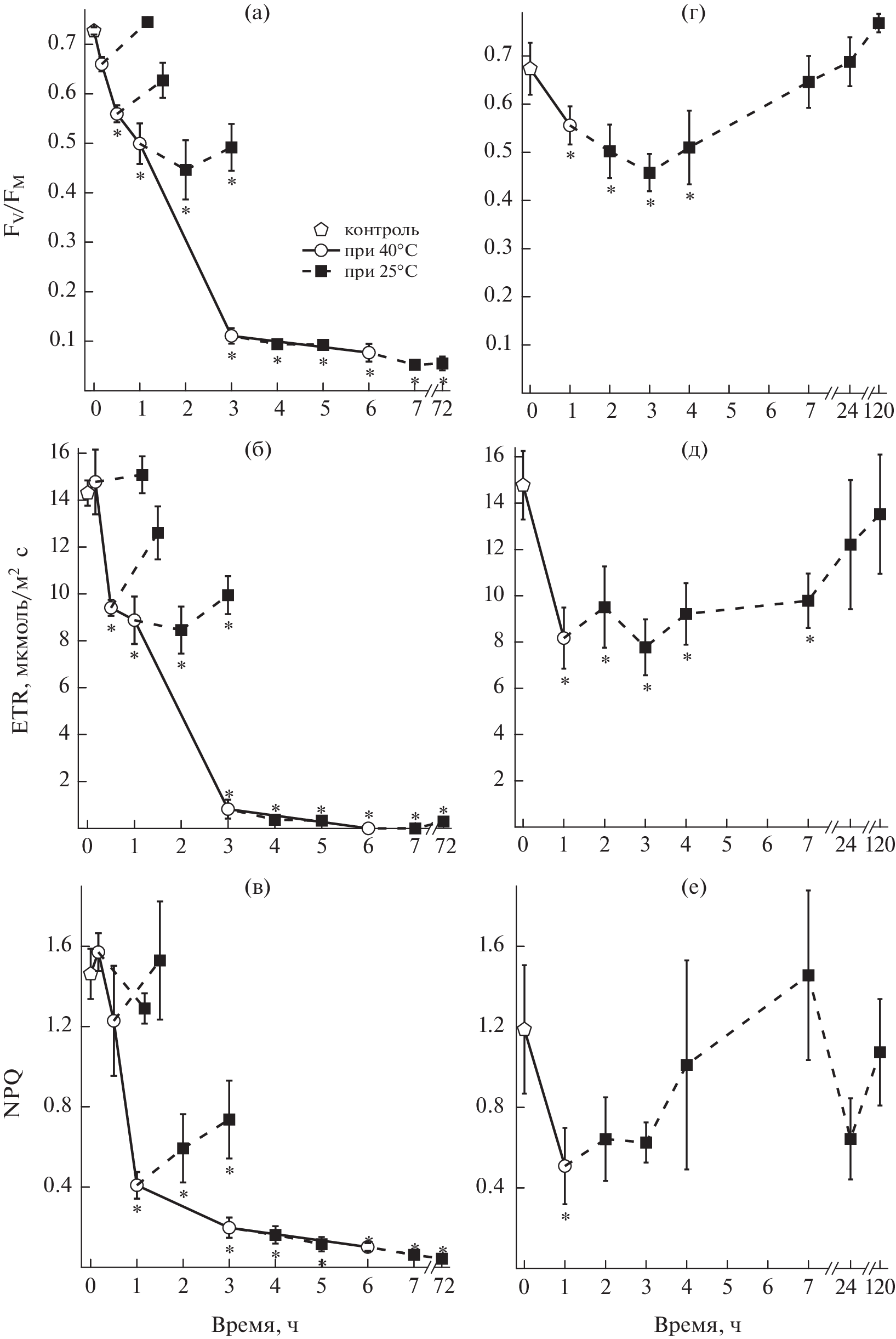 Показано влияние положительных и отрицательных температур, а также обезвоживания/регидратации на максимальную фотохимическую эффективность, скорость переноса электронов в фотосистеме II и нефотохимическое тушение мха Hylocomium splendens, широко распространенного в бореальных лесах Северного полушария. Обнаружено, что данный мох устойчив к воздействию низких отрицательных (–20 и –80°C) температур и значительным потерям воды. Напротив, в гидратированном состоянии он неустойчив к длительному воздействию положительной температуры (40°C). Высокая устойчивость к низким температурам и обезвоживанию позволили H. splendens успешно адаптироваться к произрастанию в северных широтах и занять обширный ареал.
