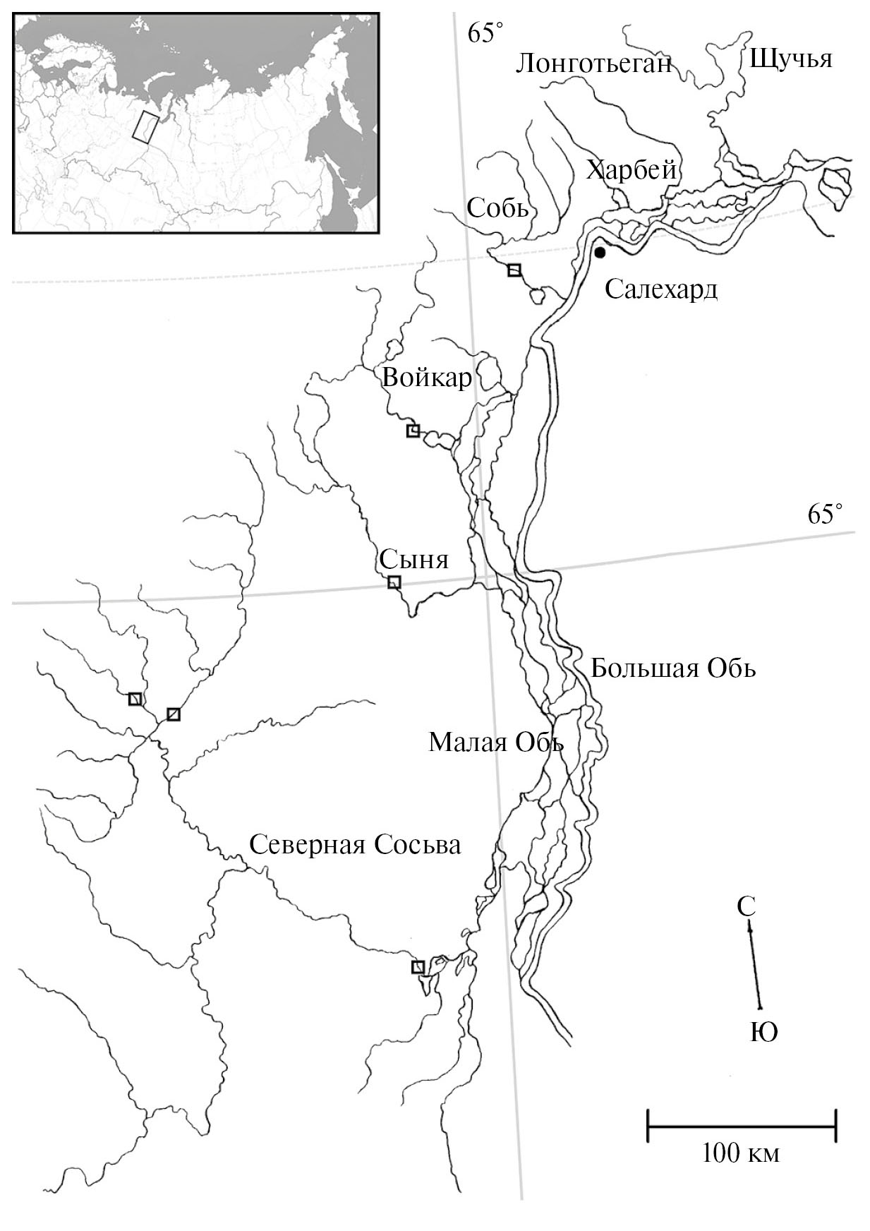 Район исследования. Сбор данных проведен в бассейнах левобережных нерестовых притоков Нижней Оби: Северная Сосьва, Сыня, Войкар, Собь – в 1981–2023 гг. (рис. 1). Так как значение рек Харбей и Лонготъеган [3] в воспроизводстве обского чира крайне мало (от 0 до 0.1%), эти реки не рассматривались в общем анализе.