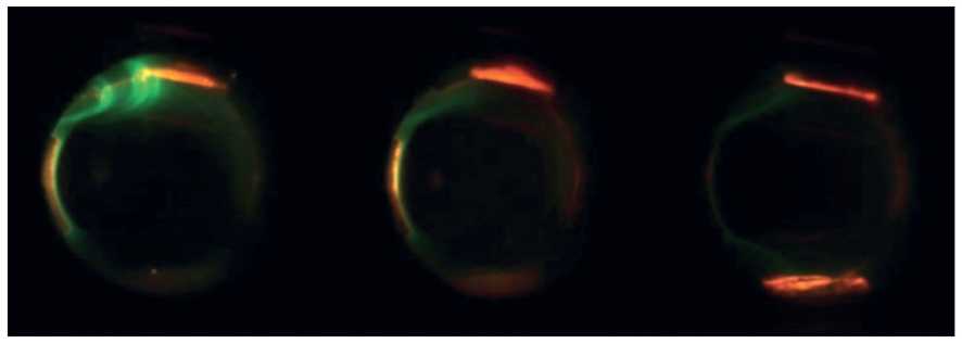 Рис. 11. Свечения литиевой диафрагмы: слева — в начале кампании; средний — в середине; справа — в конце.