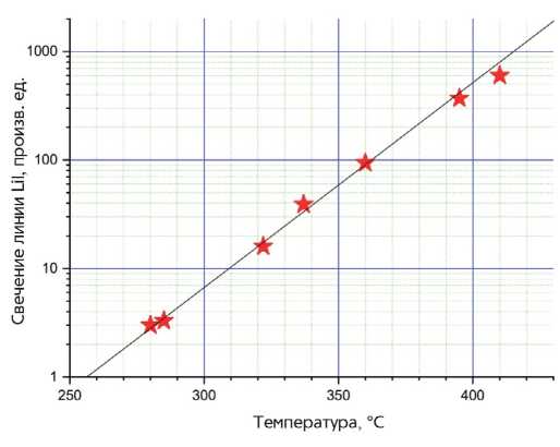 Типично, что в начале для достижения этой температуры приходилось вводить диафрагму в разряд до радиуса 27 см, однако через 5—10 мин температура начинала расти, и приходилось уменьшать глубину ввода диафрагмы. Вероятно, это было связано с очисткой поверхности, в результате чего уменьшалась степень черноты и, соответственно, потери тепла с излучением. Одновременно, цветная видеокамера фиксировала рост красного свечения в области диафрагмы, определявшегося линией 6105 Å атома Li I. После этого диафрагма выводилась из разряда и была готова к использованию в эксперименте.