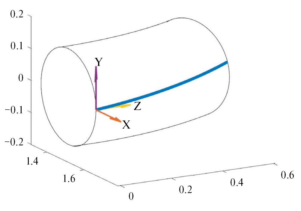 Рис. 6. Система координат GENE (X, Y, Z), расположенная на силовой линии (толстая сплошная линия) на элементе магнитной поверхности со средним радиусом r / a = 0.5 токамака Т-10.