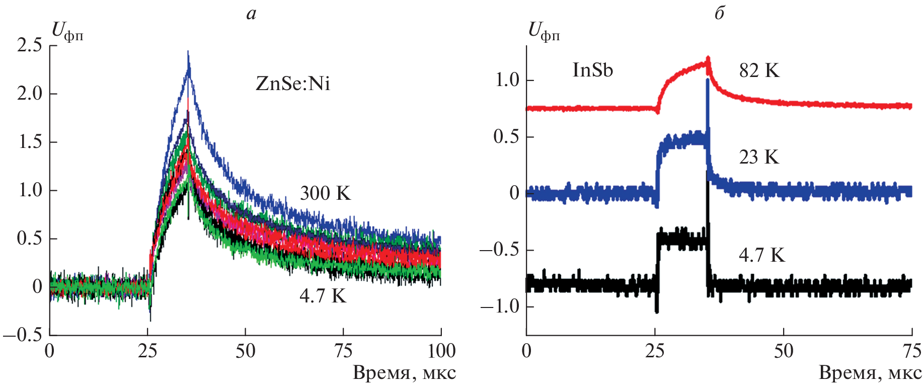 The results of studying the effect of temperature and magnetic field on the relaxation of the thermo-optical signal in semiconductor samples with different electronic spectra n-Ge, n-InSb, ZnSe:Ni are presented. The results were obtained using a two-beam fiber-optic “pump–probe” method with a Fabry–Perot interferometer in the temperature range from 4.2 to 300 K with the application of a magnetic field up to 8 T. The significant change of behavior of reflected probing beam with wavelength of 1530 nm was found after the action of a pump pulse for the sample of n-Ge at temperatures below 30 K and a field induction of more than 2 T. This phenomenon is caused by transformation of electronic structure.