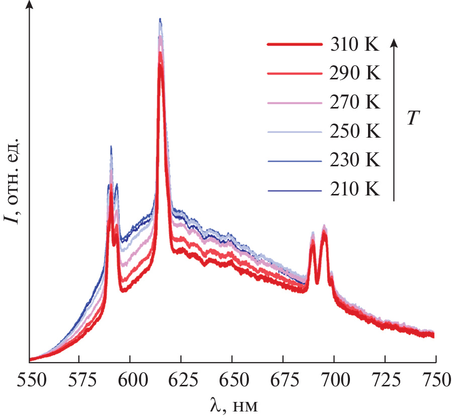 The results of temperature testing of the two-phosphor composite ([Ru(dipy)3]2+@SiO2 and NaYF4:Eu,Gd) are presented in order to assess the prospects for its further application as a luminescent thermal sensor in the range of 200–310 K. By calibrating the temperature dependences of individual spectral components of the emission produced under irradiation by cw laser at 405 nm, the possibilities of temperature sensing by means of ratiometric method are analyzed in four different spectral ranges of the composite’s visible luminescence.