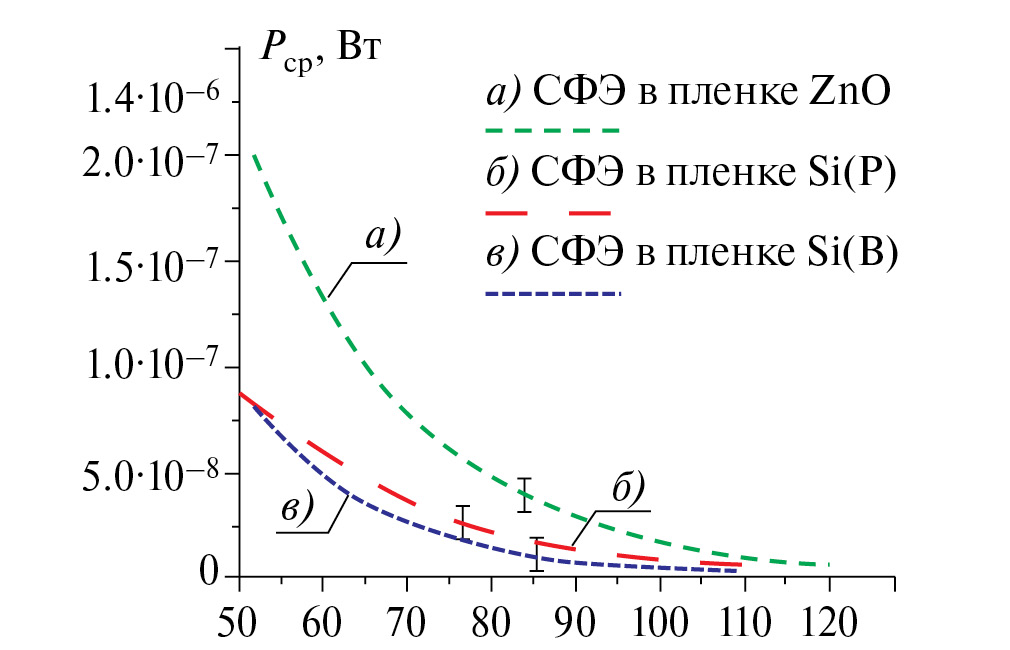 Кроме того, в изготовленных образцах тонких пленок оксида цинка нами были исследованы релаксационные спады интенсивности сигналов СФЭ. На рис. 2 показаны измеренные кривые спада сигналов СФЭ, на основе анализа которых были определены значения времени необратимой продольной релаксации Т1 в пленках оксида цинка, кремния, легированного фосфором, и кремния, легированного бором. Для пленок толщиной 100 нм оно составило: 4300±690 фс (для ZnO); 670±120 фс (для Si(P)); 280±50 фс (для Si(B)).
