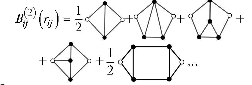 Каждая диаграмма является многомерным интегралом. Линии соответствуют парным корреляционным функциям hij(rij). Черные точки означают умножение на nGi с интегрированием по соответствующей координате . Светлые точки соответствуют аргументам rij. Таким образом, значения бридж-функционалов зависят не только от аргумента rij, но и от распределения плотности в окрестности точек . При решении конкретных задач нелокальные бридж-функционалы заменяют локальной функцией , . Логическое обоснование такой замены отсутствует, тем не менее такой подход до сих пор активно используется и приводит к приближенным интегральным уравнения для парной корреляционной функции h(r12).