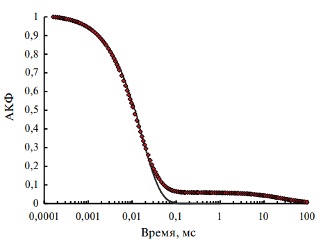 В настоящее время метод квазиупругого или динамического рассеяния света (англ. dynamic light scattering, DLS) широко используется для исследований дисперсных систем различной природы [15, 16]. Физической основой метода является измерение флуктуаций интенсивности света, рассеянного малым объемом коллоидного раствора на угол θ. Флуктуации интенсивности рассеянного света связаны с поступательным и вращательным броуновским движением частиц, а также отдельных частей структурно-сложных объектов, например, полимерных цепей. Из частотного спектра флуктуаций можно получить информацию о коэффициенте диффузии коллоидных частиц, который, в свою очередь, зависит от их размеров. Современные приборы, предназначенные для исследования DLS, обычно измеряют не спектр флуктуаций, а автокорреляционные функции (АКФ) интенсивности рассеянного света и электрического поля рассеянной волны: