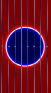 где Гα — некоторая функция, , — сила поверхностного натяжения (μ – химический потенциал, ϕ — относительная концентрация тяжелой фазы), — пондеромоторная сила (μ0 — магнитная постоянная, x — магнитная восприимчивость, — напряженность магнитного поля), — сила тяжести.