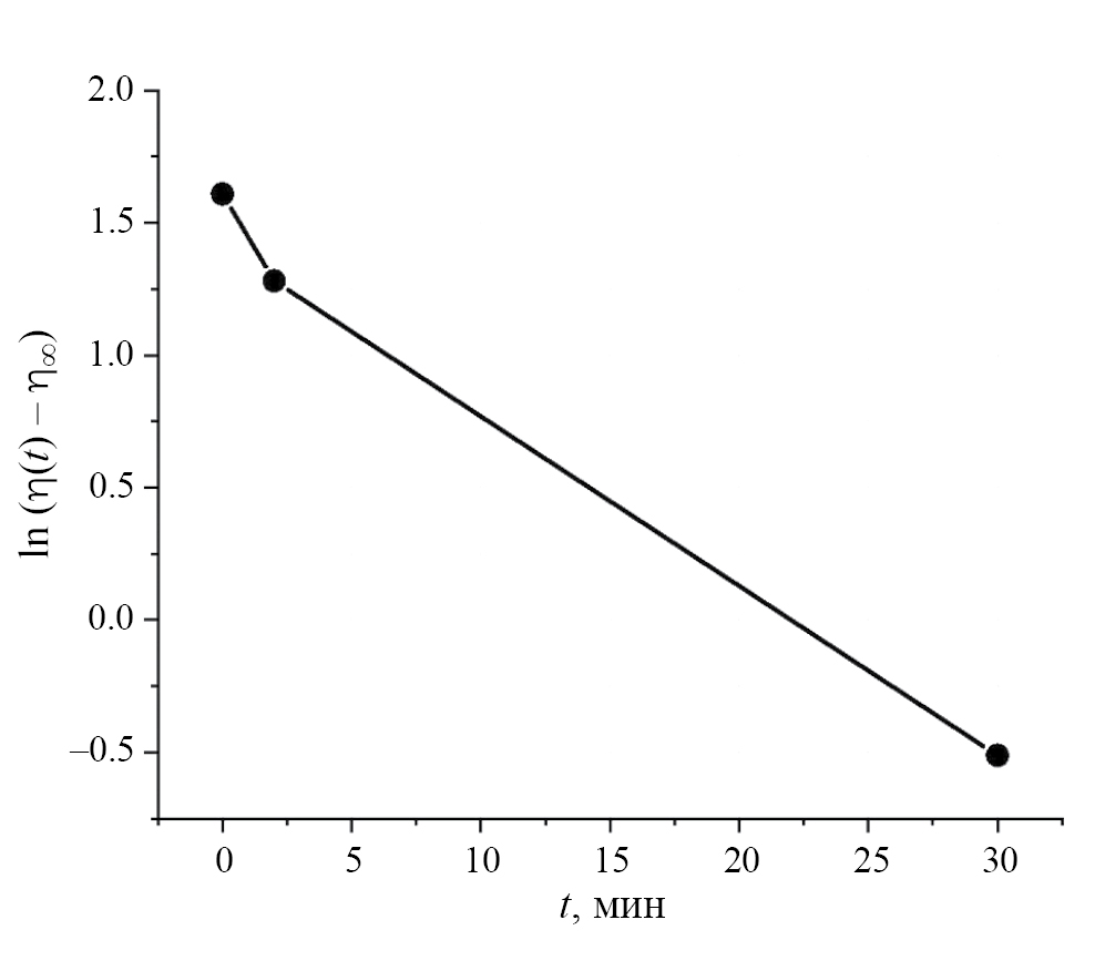 Рис. 6. Зависимость ln(η(t) - η∞) от времени t.