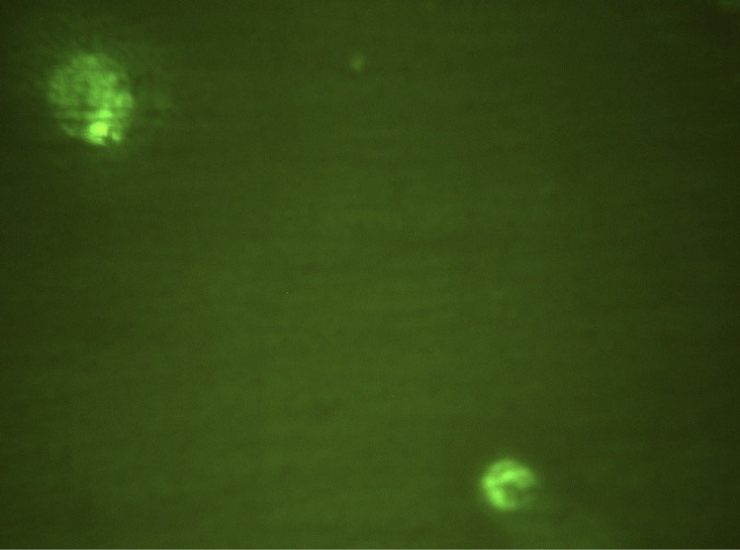 Рис. 1. Клетки десневой жидкости, экспрессирующие CD282. Окраска FITC, ×1000.