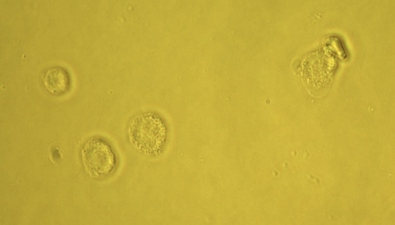 Рис. 2. Клетки десневой жидкости. Фазовый контраст, ×1000.