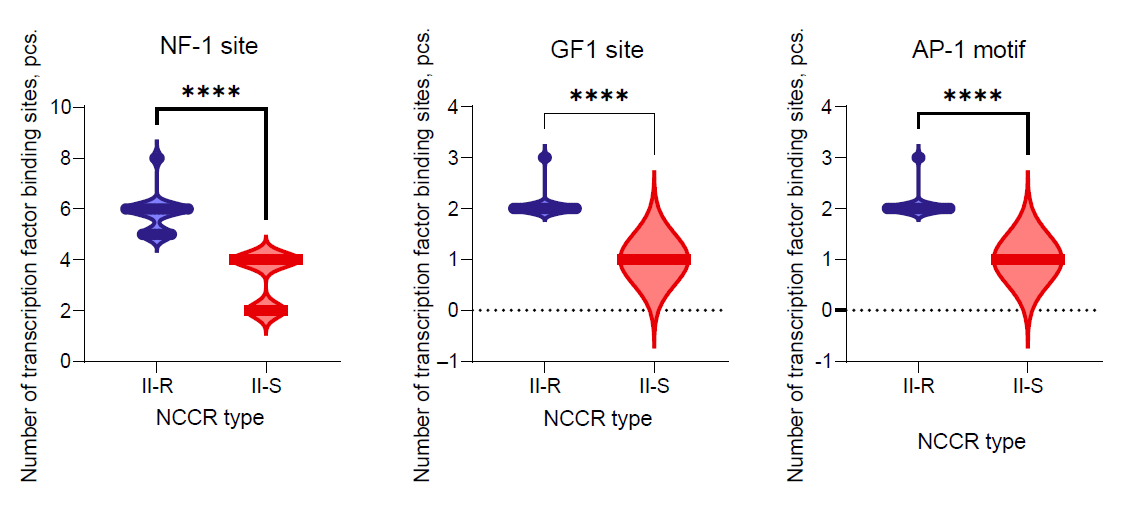 Materials and methods. A total of 26 blood plasma samples and 8 cerebrospinal fluid samples were analyzed using nested PCR to study the JCPyV NCCR structure in Russian MS patients treated with natalizumab. The NCCRs present in the samples were cloned and sequenced by Sanger sequencing. All the JCPyV NCCR sequences were compared with the archetype sequence and mapped. The NCCR sequences were also examined for presence of putative transcription factor binding sites.