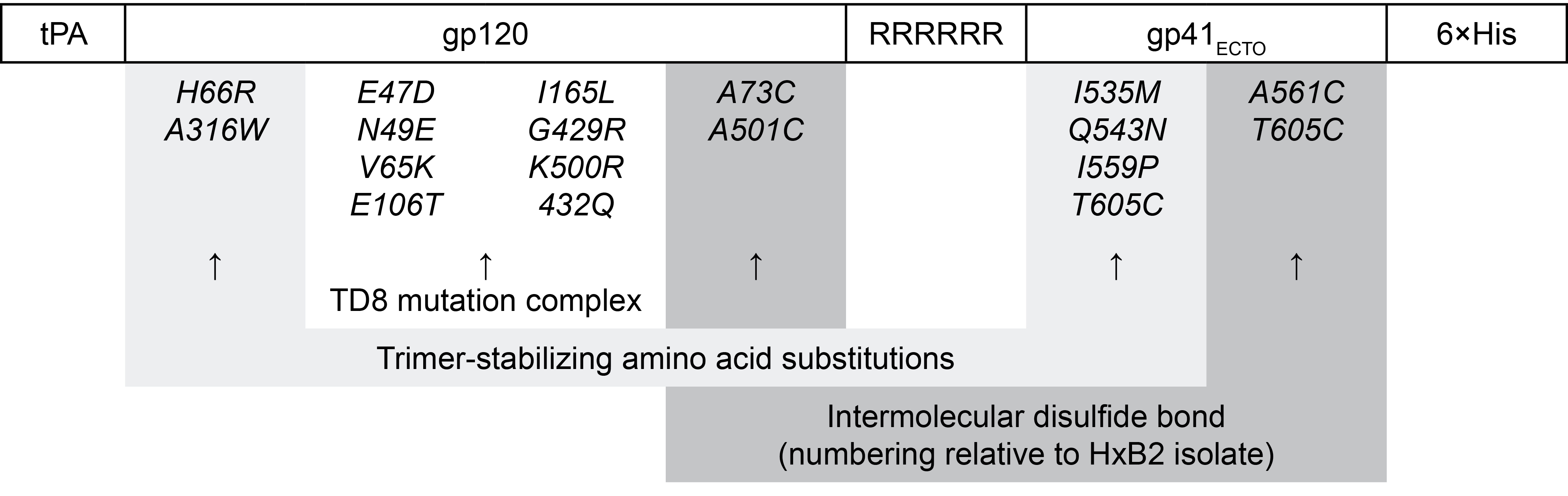Fig. 1. Design of the Env trimer gp140.SOSIP.664.opt.