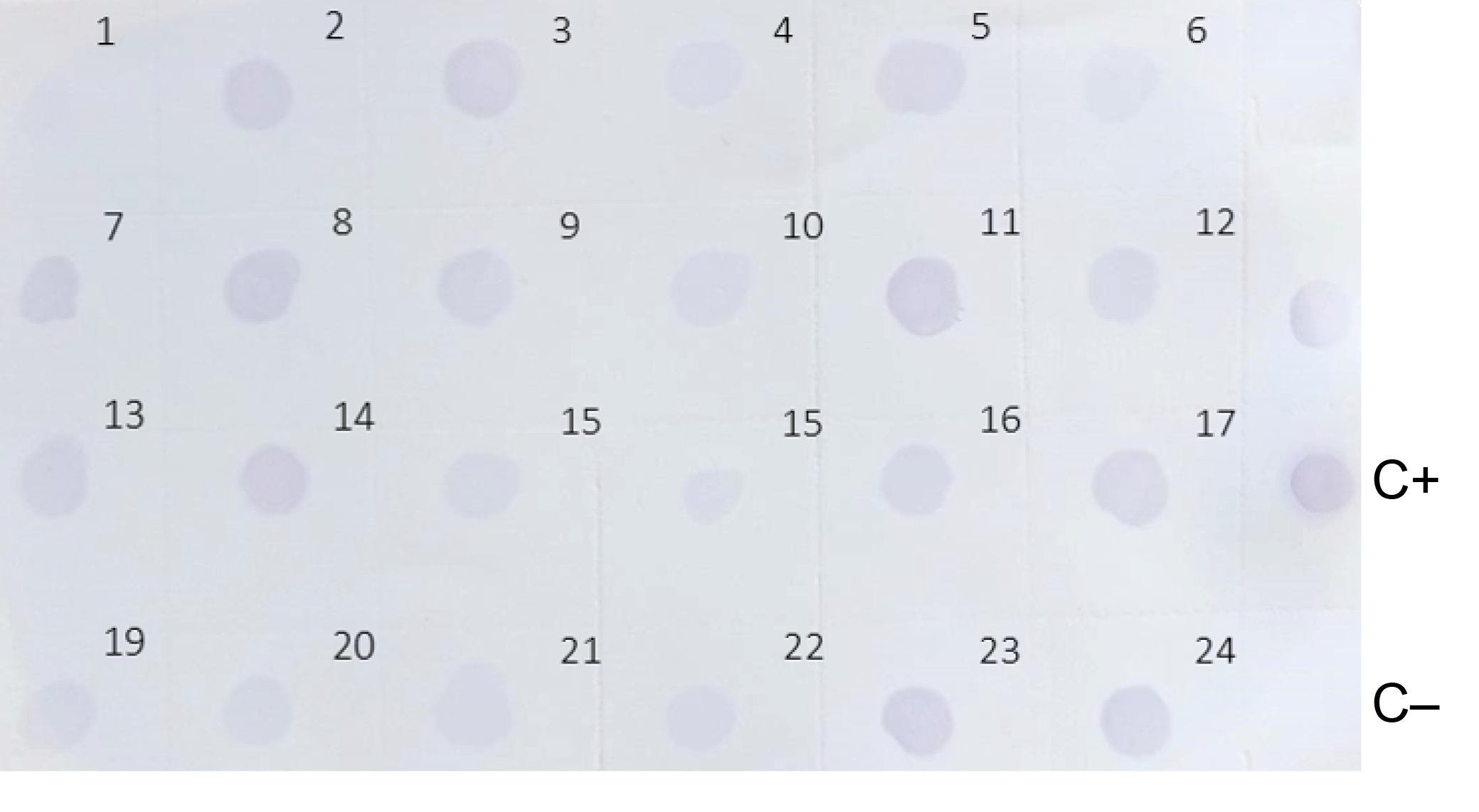 Fig. 3. Dot blot analysis of the culture medium collected from monoclonal cell cultures CHO-K1-gp140.SOSIP.664.opt.