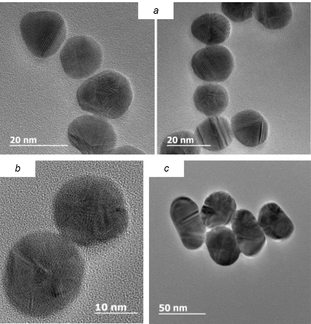 The solution was boiled with a reflux condenser for 20 min under stirring, then cooled to room temperature. Absorption spectra within the wavelength range from 400 to 700 nm were measured using a Multiskan GO tablet (flatbed) spectrophotometer («Thermo Scientific»). GNP structures were studied using «Jeol JEM ARM200F» atomic resolution scanning transmission electron microscope («HAADF-STEM») equipped with an energy dispersion analysis (EDX) system based on a «GIF Quantum» spectrometer with a «Centurio EDX» detector with 0.08 nm resolution at accelerating voltage of 200 kV in STEM mode («Jeol») [23, 24]. TEM samples for the study were prepared by depositing a sample of GNP solution pre-diluted to A520 = 1.0 absorbance onto carbon film-coated copper meshes.