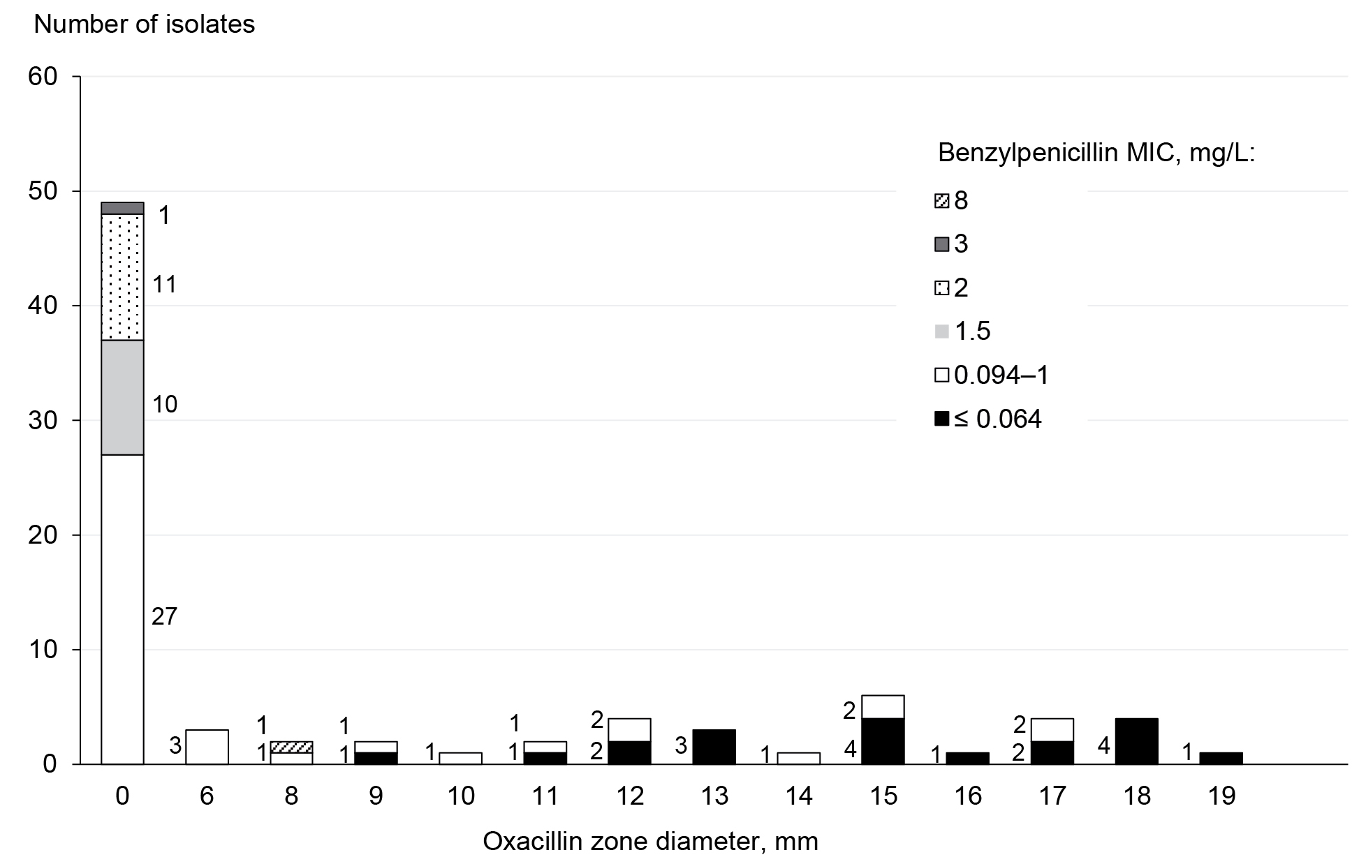 Fig. 1. MIC of benzylpenicillin in S. pneumoniae isolates that screened positive with 1 μg of oxacillin (n = 83).
