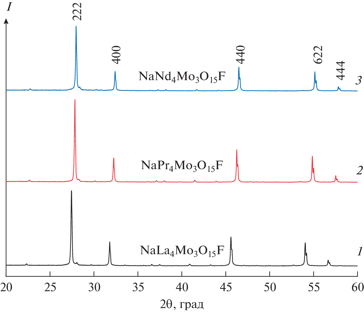 - Voronkova, V., Kharitonova, E., Orlova, E., Baldin, E., Gorshkov, N., Goffman, V., and Chernyak, S., Fluorite-like LixLn5 – xMo3O16.5 – 1.5xFx (Ln = La, Pr, Nd) compounds isostructural with Nd5Mo3O16, J. Amer. Ceram. Soc., 2020, vol. 103, p. 6414.