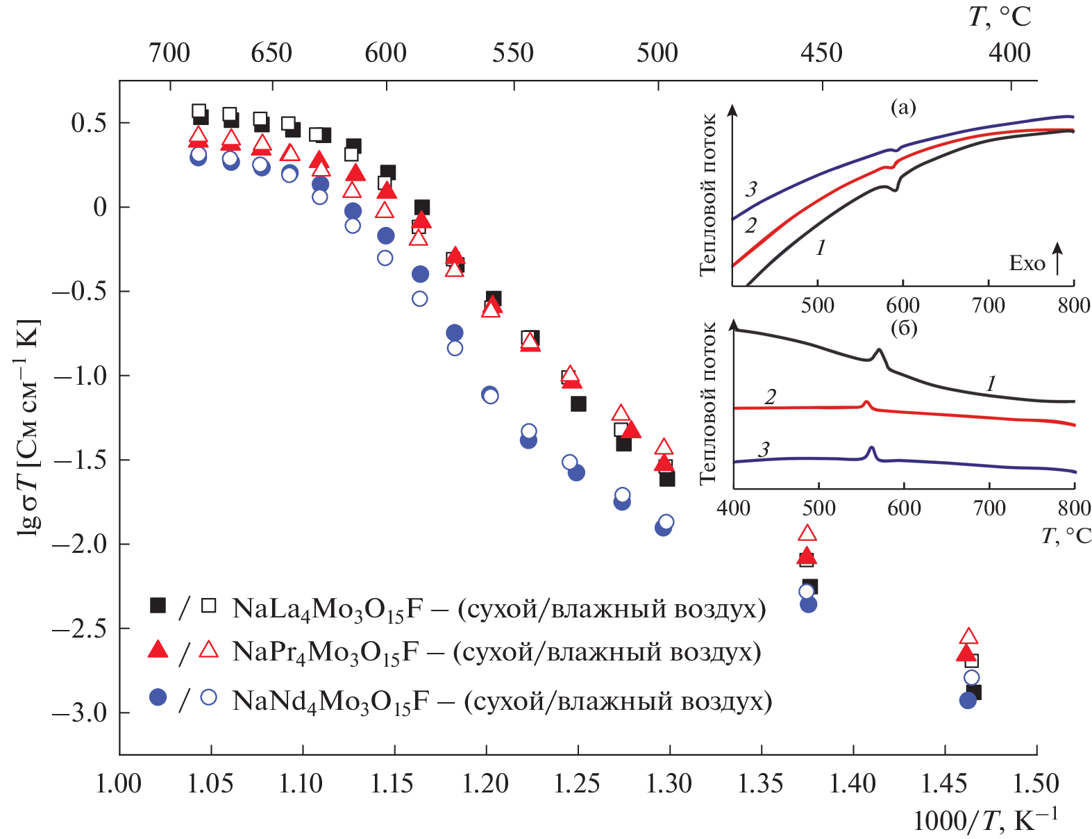 - Voronkova, V., Kharitonova, E., Orlova, E., Kezionis, A., and Petrulionis, D., Effect of sodium and fluorine co-doping on the properties of fluorite-like rare-earth molybdates of Nd5Mo3O16 type, Eur. J. Inorg. Chem., 2019, p. 1250.