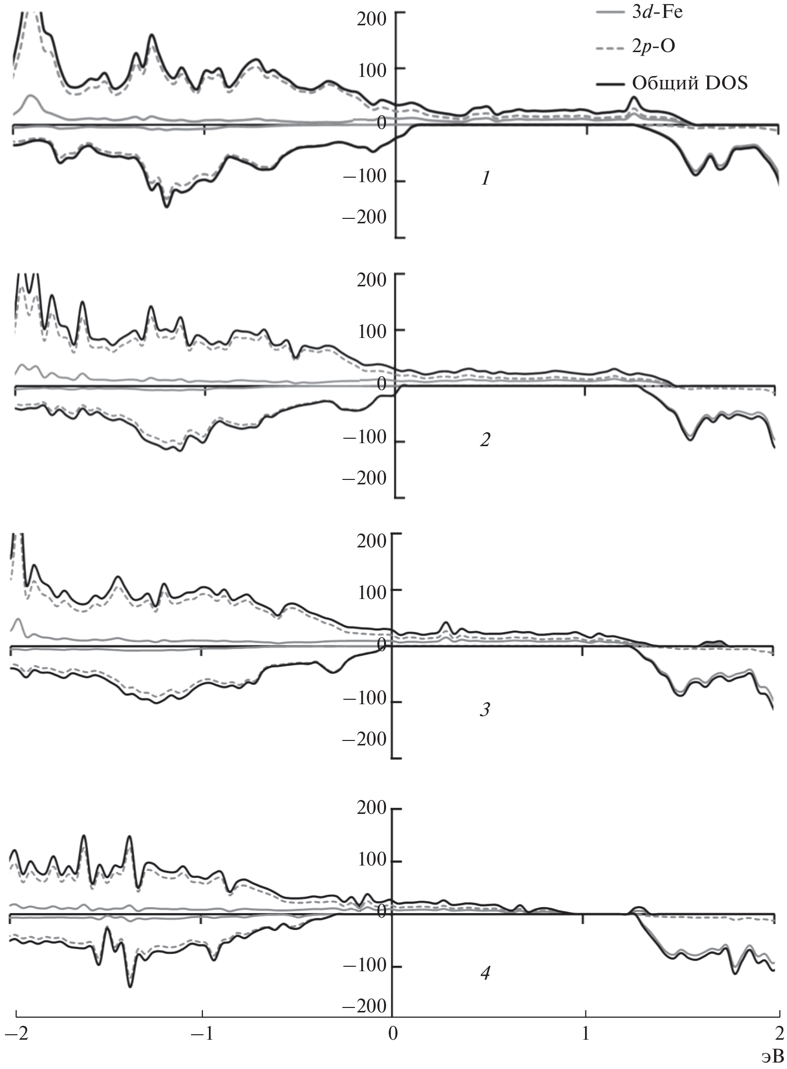 С помощью пакета VASP в рамках подхода DFT проведены расчеты свойств основного состояния оксида со структурой перовскита SrFe1 – xMoxO3 – y для различных значений содержания молибдена и кислородной нестехиометрии. Показано, что допирование, как и изменение содержания кислорода, приводит к изменению зарядового состояния ионов кислорода в системе, при этом уровень Ферми смещается относительно неизменной структуры зон (rigid band model), и происходит переход к полуметаллическому типу проводимости.