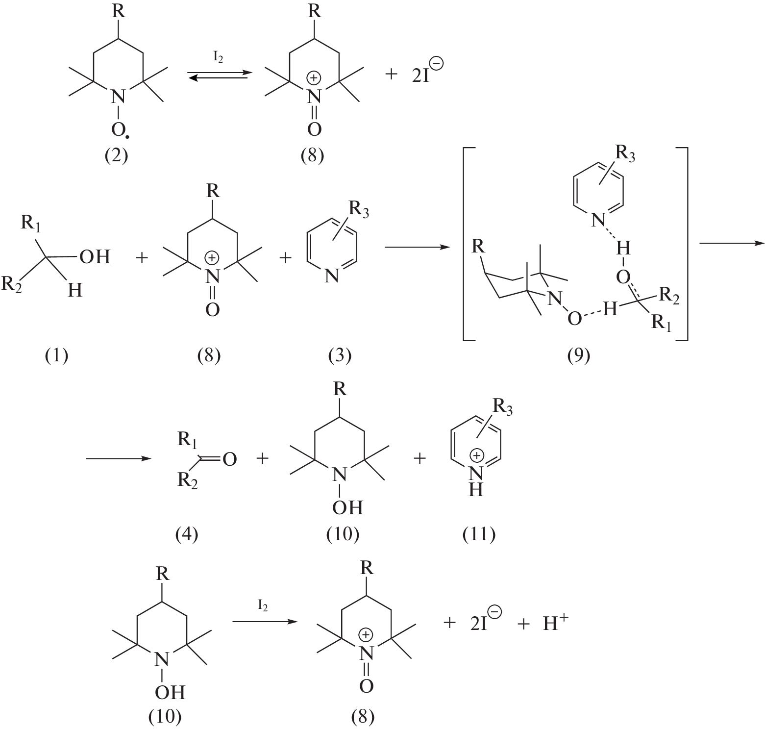 - Hamlin, T.A., Kelly, Ch.B., Ovian, J.M., Wiles, R.J., Tilley, L.J., and Leadbeater, N.E., Toward a Unified Mechanism for Oxoammonium Salt-Mediated Oxidation Reactions: A Theoretical and Experimental Study Using a Hydride Transfer Model, J. Org. Chem., 2015, vol. 80, no. 16, p. 8150. https://doi.org/10.1021/acs.joc.5b01240