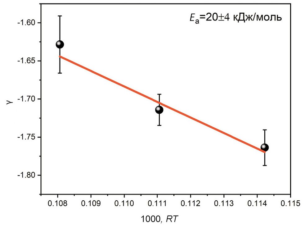 На рис. 5 приведены результаты линеаризации приведенных выше данных кислородной проницаемости в виде аррениусовских зависимостей, где γ – температурный фактор, связанный с лимитирующей стадией переноса кислорода, согласно работе [20]. Значения температурных факторов были получены при расчете тангенсов углов наклона линеаризованных зависимостей кислородного потока через мембрану от давления питающего газа.
