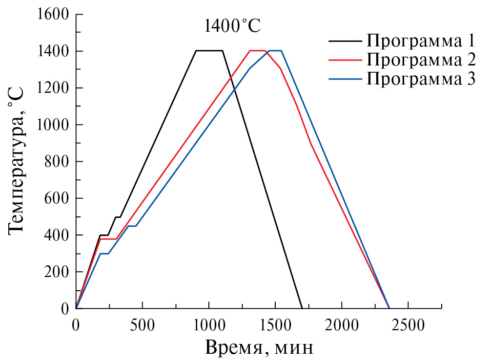 Для оптимизации режима отжига анодных заготовок варьировали скорость нагрева (1–2°С/мин) и температуру промежуточной выдержки, необходимую для отжига основных органических компонент пасты (300–500°С). Все исследованные режимы температурного отжига анодных заготовок представлены на рис. 6.