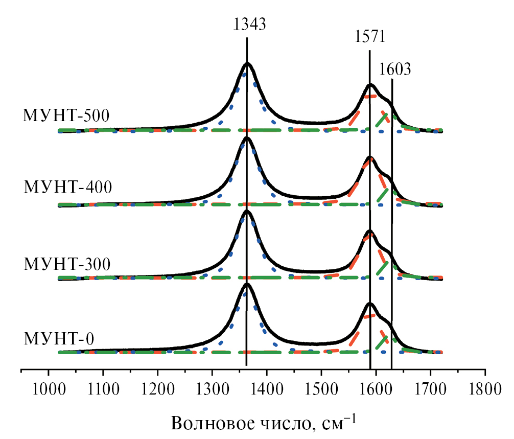 Образцы были названы “МУНТ-температура восстановления”, исходные МУНТ получили название “МУНТ-0”.