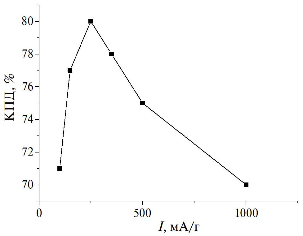 Удельная емкость на грамм электрода: