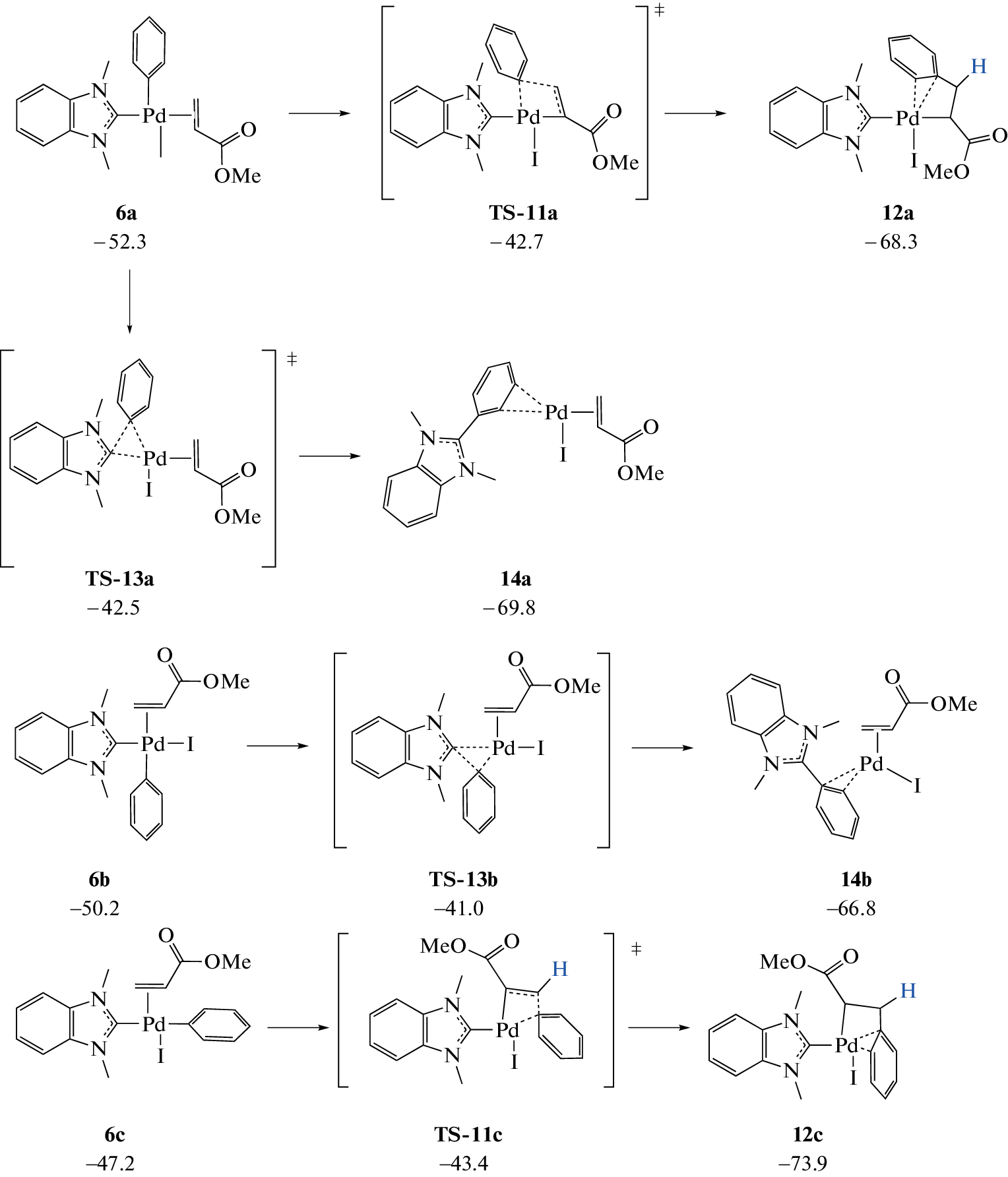 The mechanism of the formation of catalytic species in the practically important Mizoroki–Heck reaction, which is in demand in modern fine organic synthesis, has been studied. It has been shown that catalysts based on palladium complexes with N-heterocyclic carbene ligands are transformed into a “ligand-free” form under the conditions of the Mizoroki–Heck reaction. Molecular modeling performed using quantum chemical methods showed that these processes compete with the target reaction at three of the six stages of the catalytic cycle. The presence of catalyst transformation products in the reaction system was confirmed by methods of nuclear magnetic resonance and mass spectrometry. Important mechanistic data have been obtained for the rational design of catalytic systems for cross-coupling reactions.