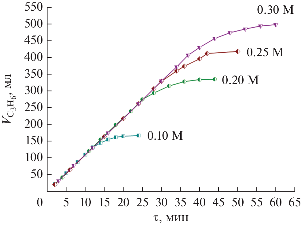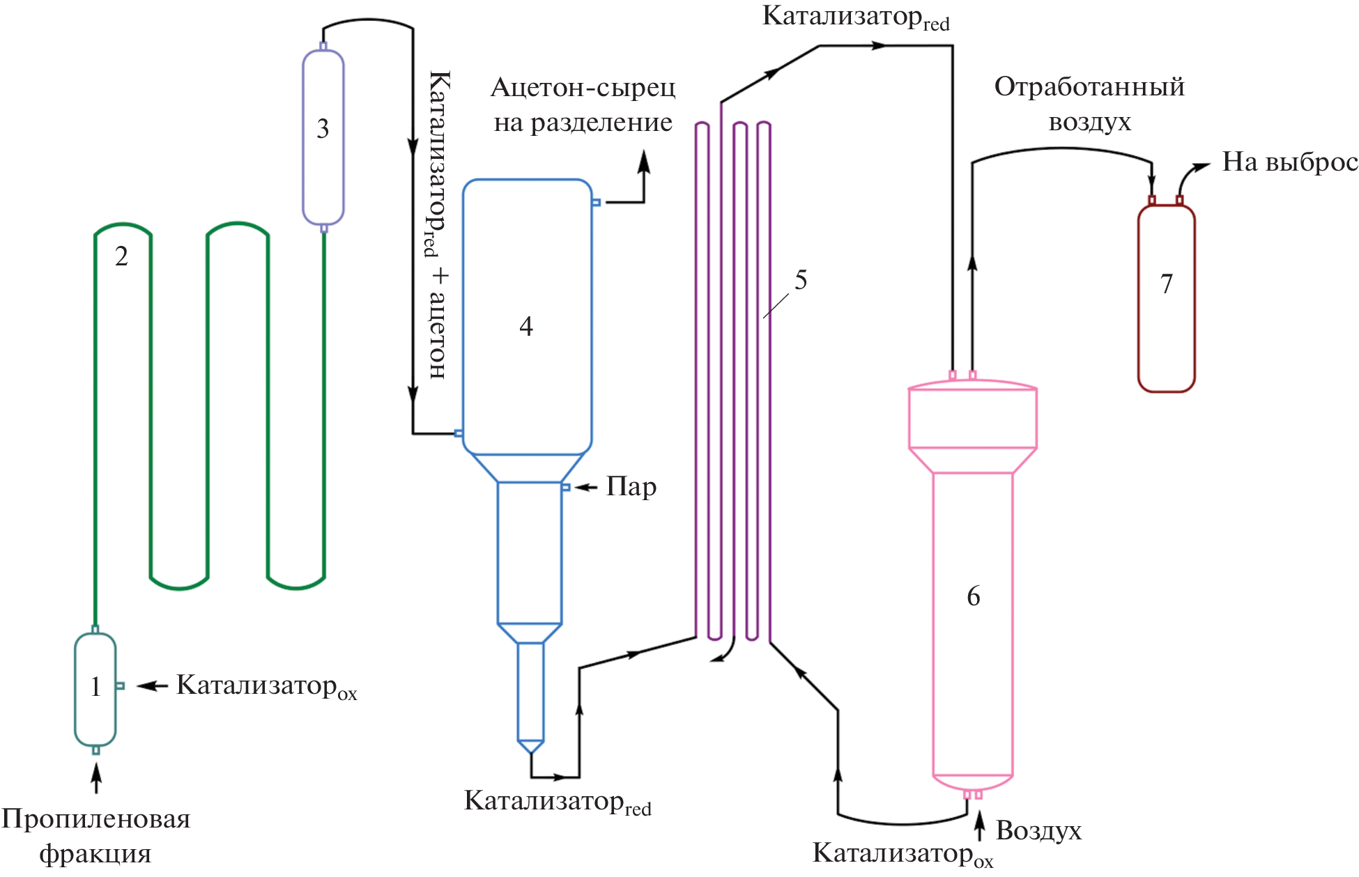 Investigations on the development of homogeneous chloride-free two-stage process (1st stage – target reaction, 2nd stage – catalyst regeneration) for oxidizing С3Н6 to acetone with oxygen in the presence of catalyst \({\text{Pd}}_{{{\text{aq}}}}^{{{\text{2 + }}}}\) + Mo-V-Р heteropoly acid (HPA-х, х is the number of V atoms) have been presented. The kinetic equation of the target reaction has been obtained, and its mechanism has been proposed. It has been shown that catalysts based on high-vanadium modified (non-Keggin) compositions HPA-xm are the most efficient. The kinetics of C3H6 oxidation in the presence of Keggin HPA-x and HPA-xm solutions has been the same, but only the \({\text{Pd}}_{{{\text{aq}}}}^{{{\text{2 + }}}}\) + HPA-xm catalysts have turned out to be technologically feasible. These have a high thermal stability (up to 180°C), which allows the catalyst to be rapidly regenerated with oxygen. This favorably distinguishes the catalysts based on HPA-xm from Keggin HPA-x, the thermal stability of which is limited to 140°C. The possibility of rapid regeneration of the catalyst has made it possible to close the 2-stage catalytic cycle of C3H6 oxidation to acetone with oxygen and has opened up prospects for the practical use of the process in the presence of \({\text{Pd}}_{{{\text{aq}}}}^{{{\text{2 + }}}}\) + HPA-xm. The catalyst has been successfully tested for stability.