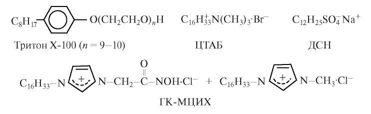 Для всех изученных систем скорости окисления диэтилсульфида пероксидом водорода незначительно снижаются с увеличением концентрации ПАВ, причем эффект возрастает в ряду ДСН < ГК–МЦИХ ≈ Тритон < ЦТАБ [23] (рис. 2).