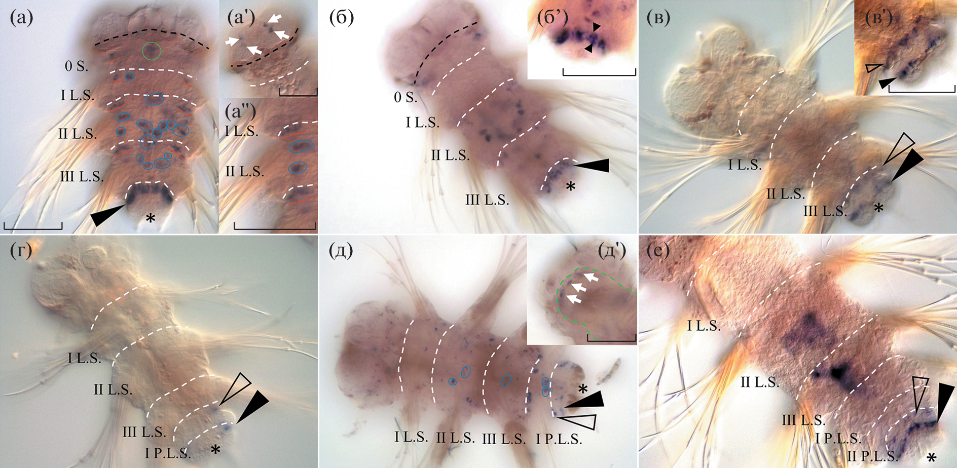 - Vellutini B.C., Hejnol A. Expression of segment polarity genes in brachiopods supports a non-segmental ancestral role of engrailed for bilaterians // Sci. Rep. 2016. V. 6. № 1. P. 32387.