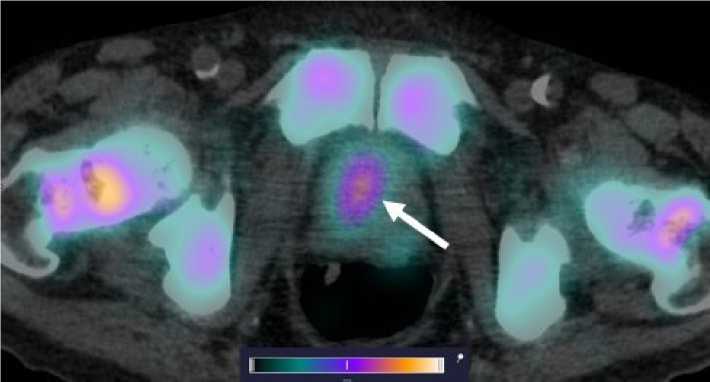 Исследование проведено на базе НИИ онкологии Томского НИМЦ и одобрено локальным биоэтическим комитетом (протокол № 17 от 21 июля 2023 г.). В исследование было включено 10 больных раком предстательной железы T1-4N0-3M0-1, подписавших информированное согласие. Критериями включения являлись следующие: морфологически верифицированный диагноз РПЖ, нормальные гематологические, почечные и печеночные показатели, удовлетворительное общее состояние пациента с оценкой по системе ЕСОG - 0–1 балл с возможностью пройти весь объем запланированных диагностических исследований. Критерии исключения: вторая локализация опухолевого процесса, подтвержденная ВИЧ-инфекция, гепатиты В и С, наличие эпицисто- или нефростомы.